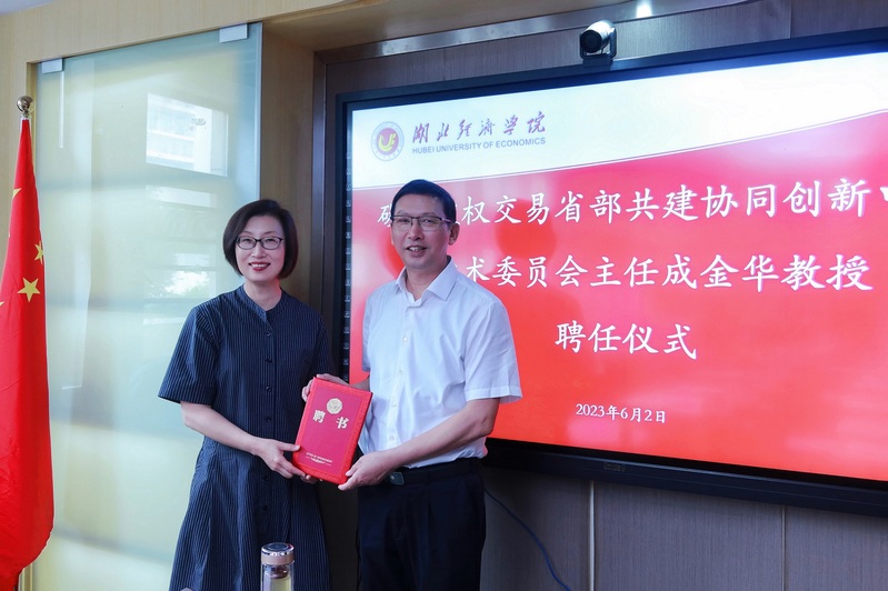 成金华教授表示,中心获批省部共建,是全国唯一的碳排放权交易省部共建协同创新中心,受聘为学术委员会主任,是荣誉,更是庄严的职责。感谢学校的信任和支持,在今后的工作中,将履职尽责,围绕专业领域带好教学科研团队,充分发挥传帮带作用,为学校建设和发展贡献力量。