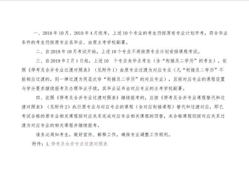 关于停考教育管理(专科)等10个专业的通知