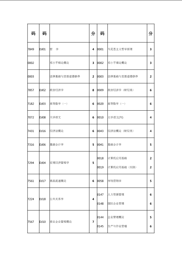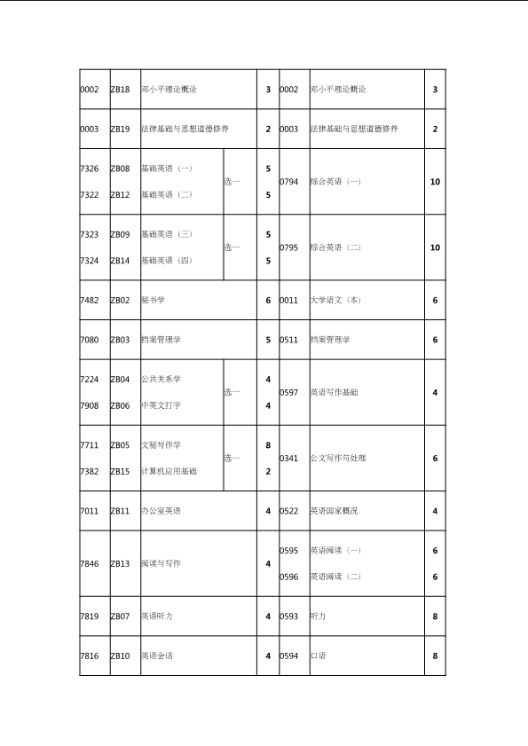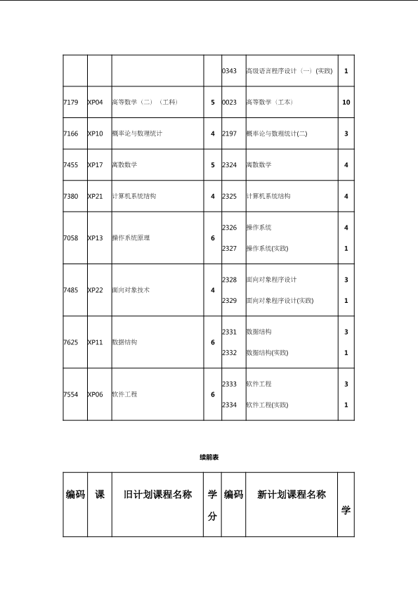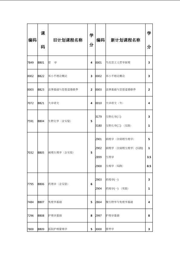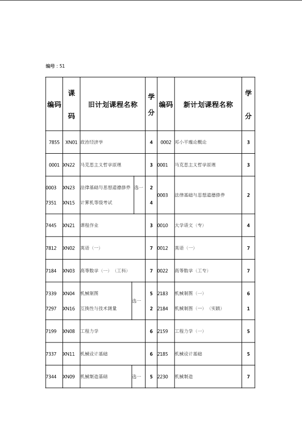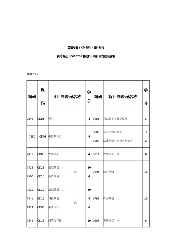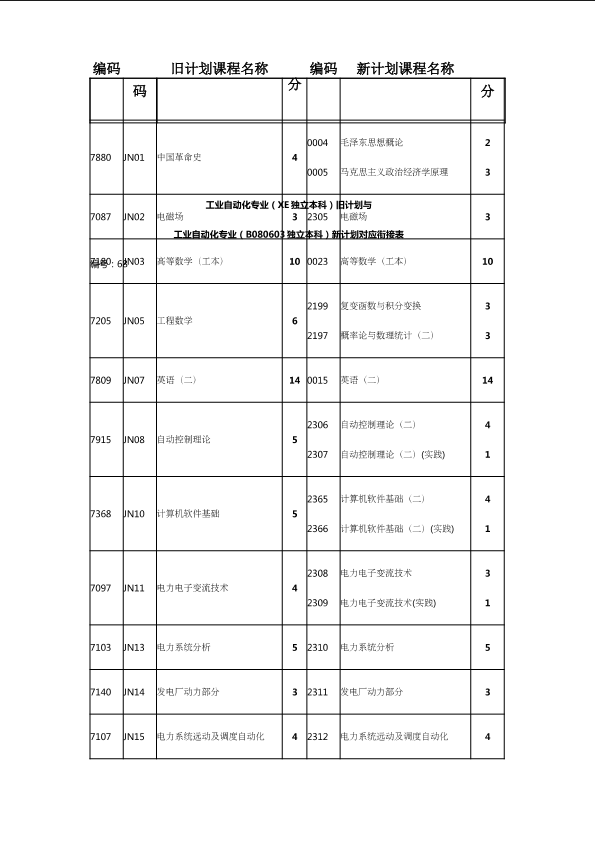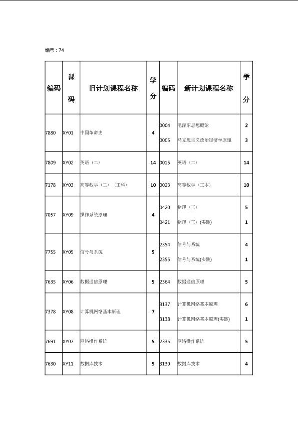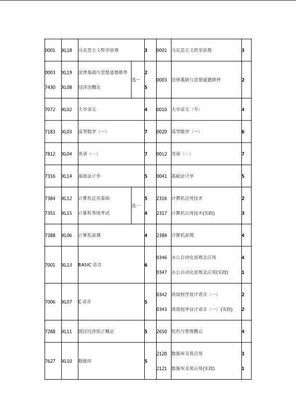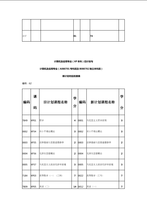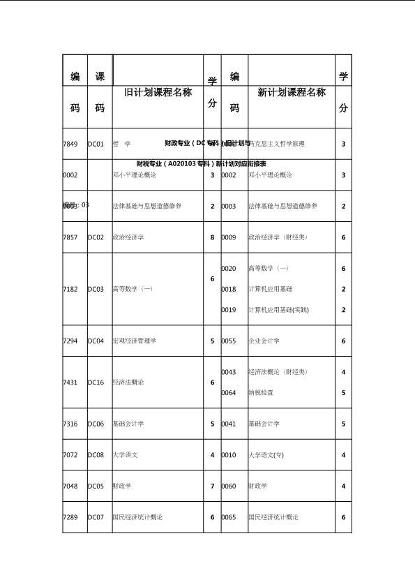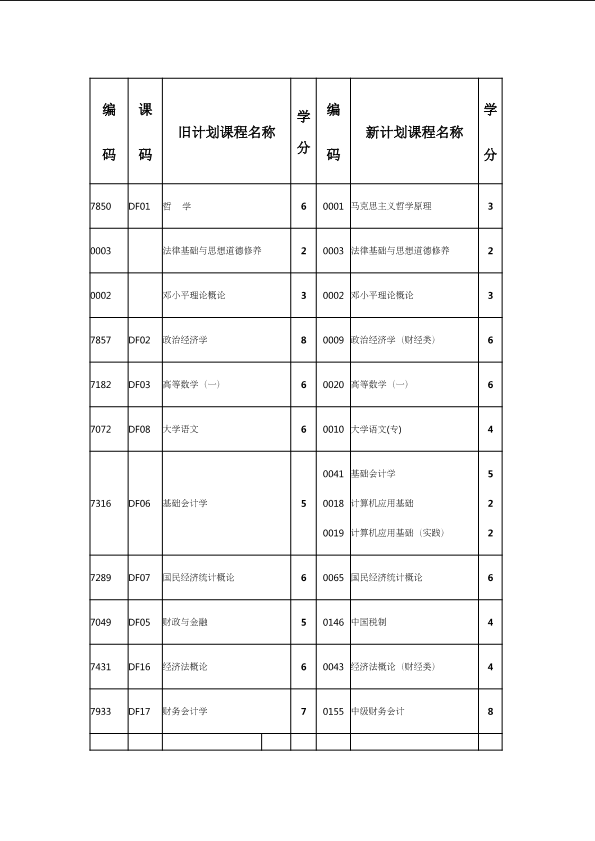 自考新旧课程对照表