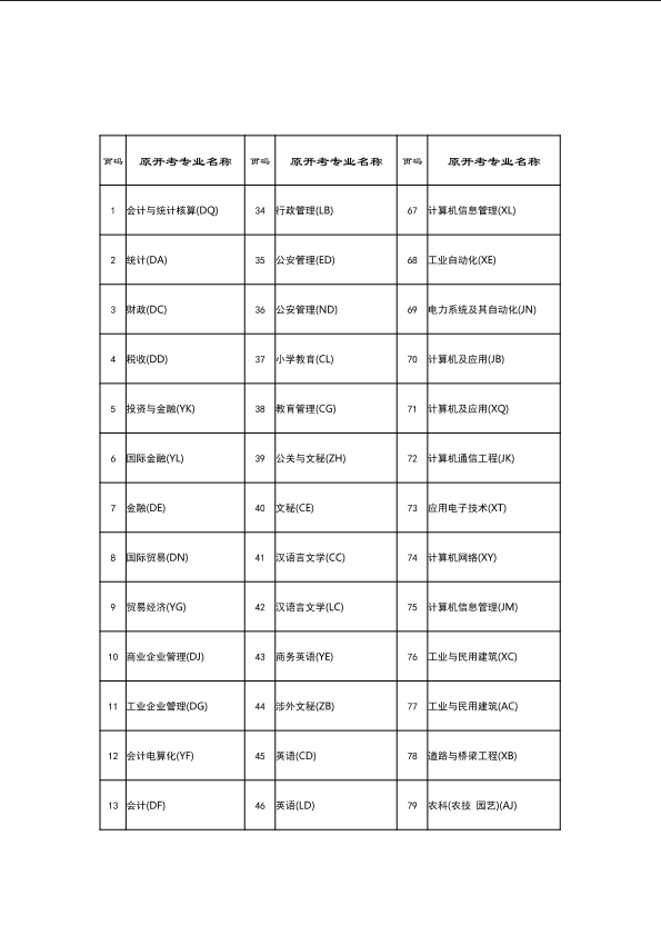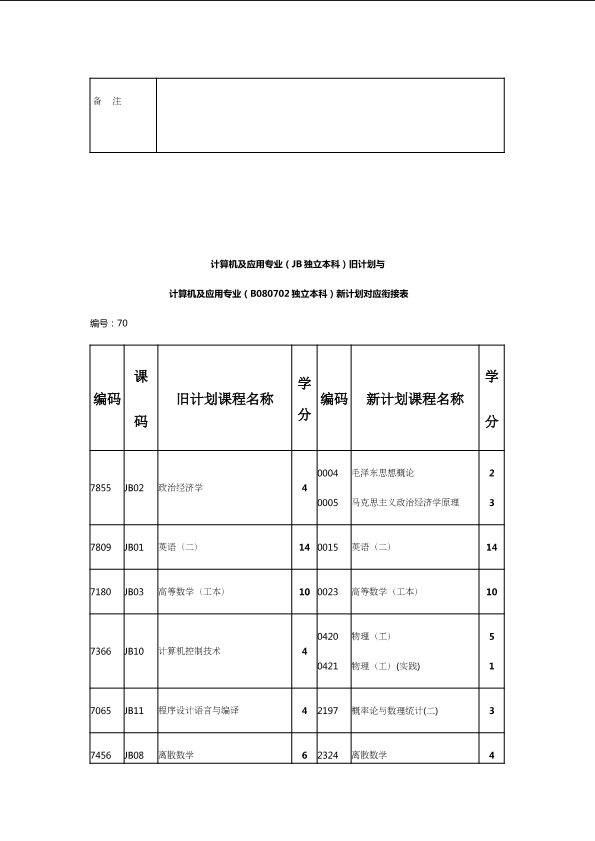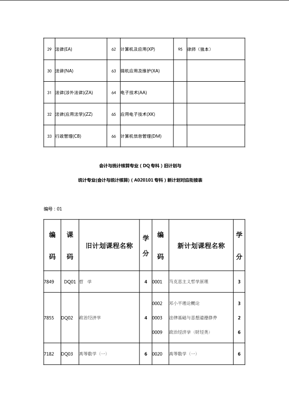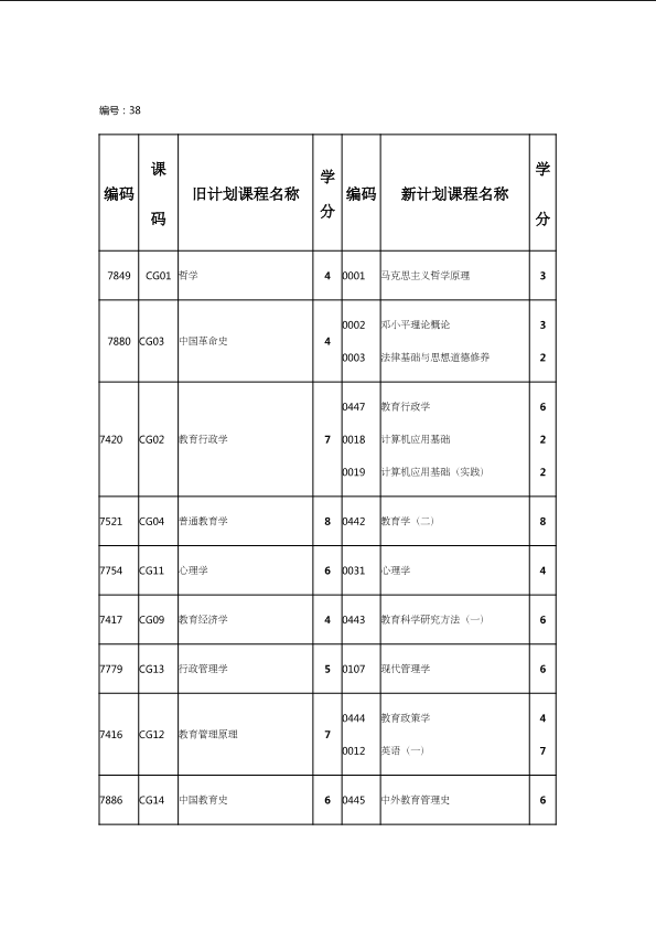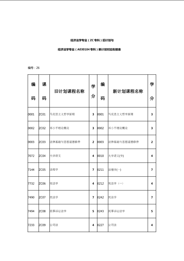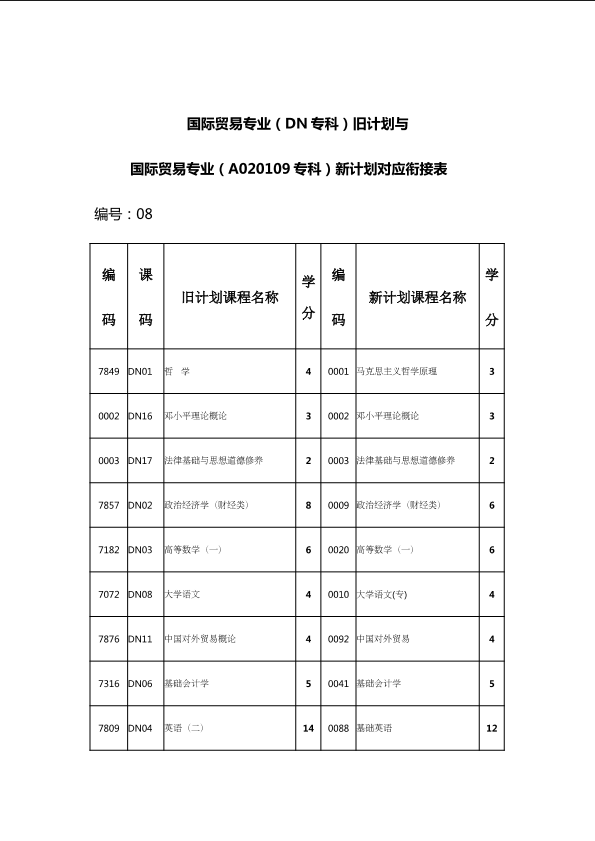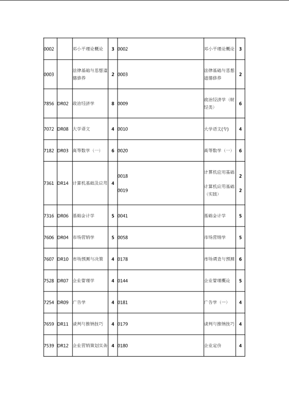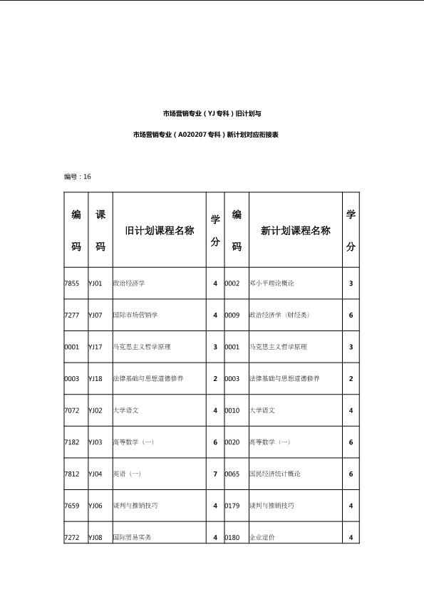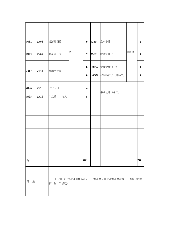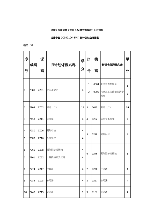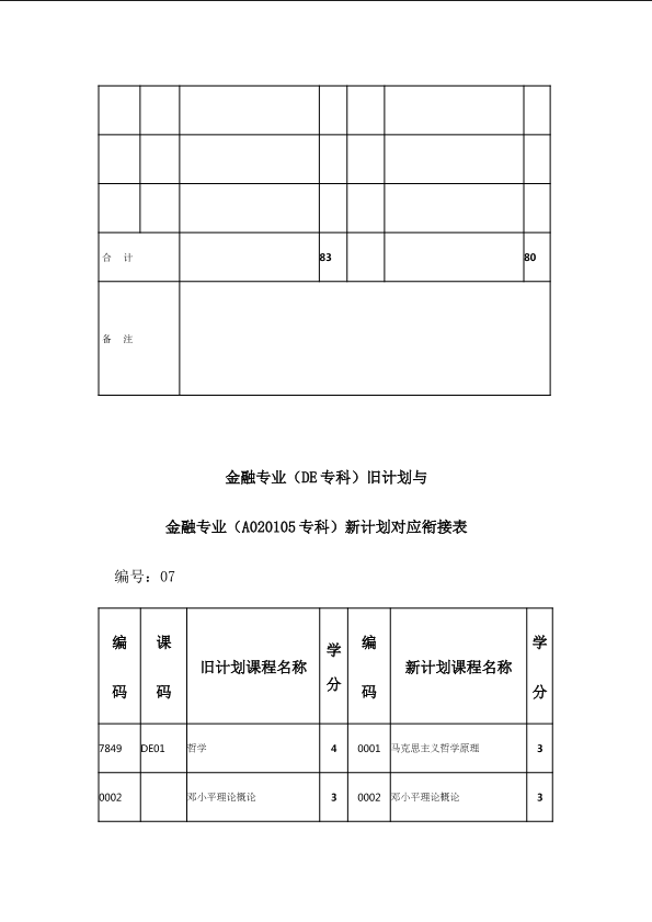 自考新旧课程对照表
