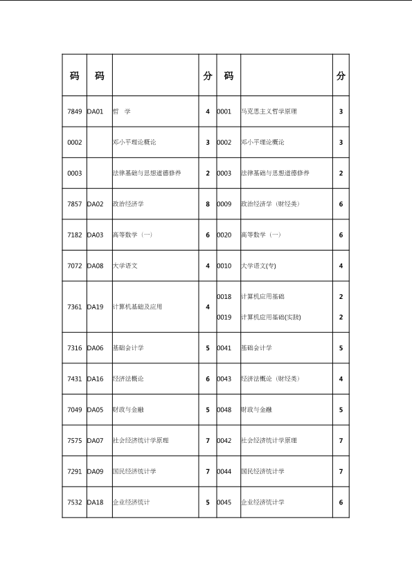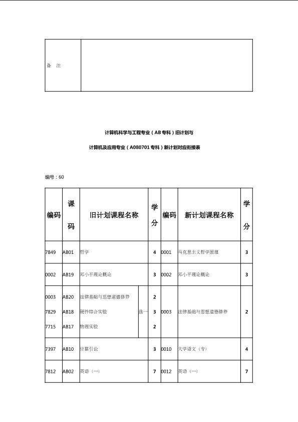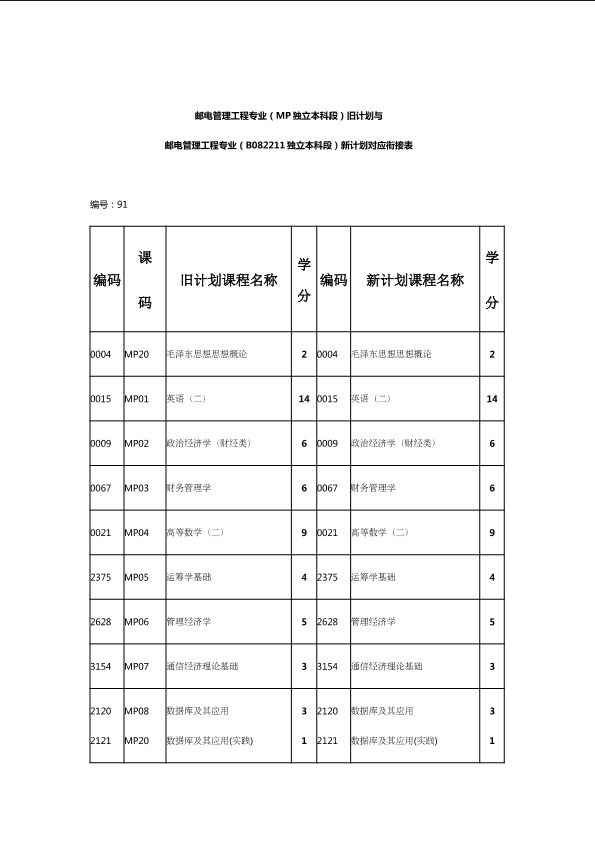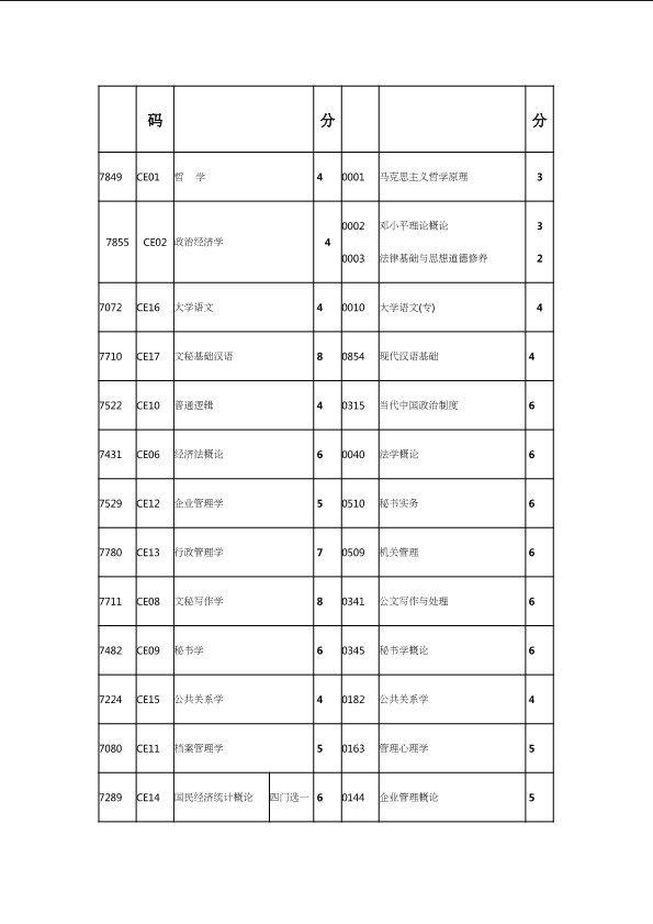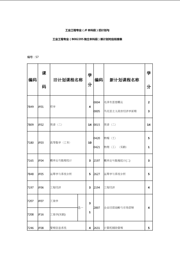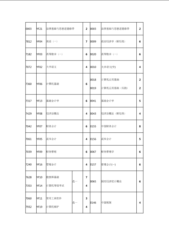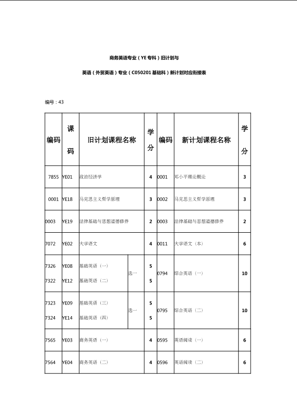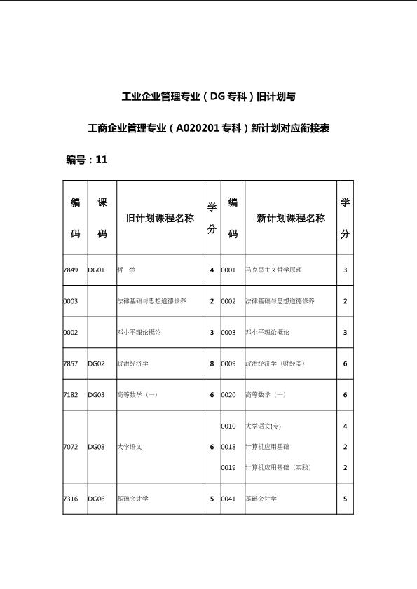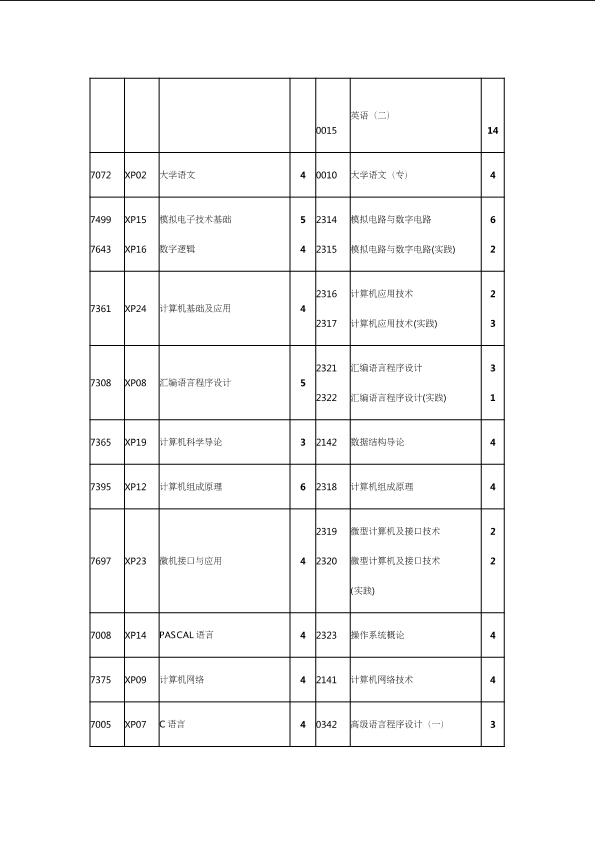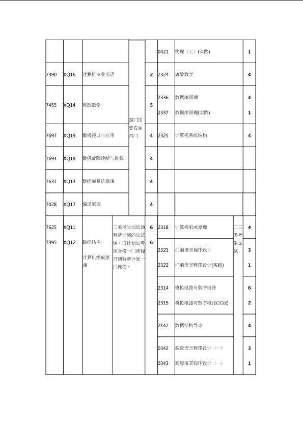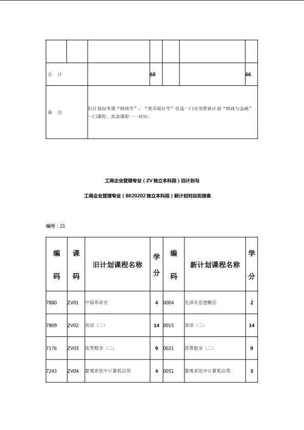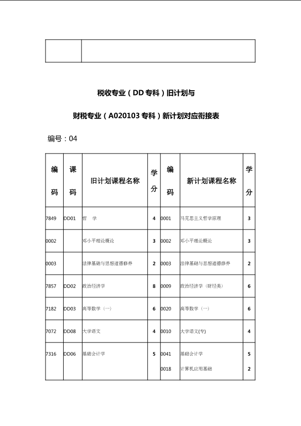 自考新旧课程对照表