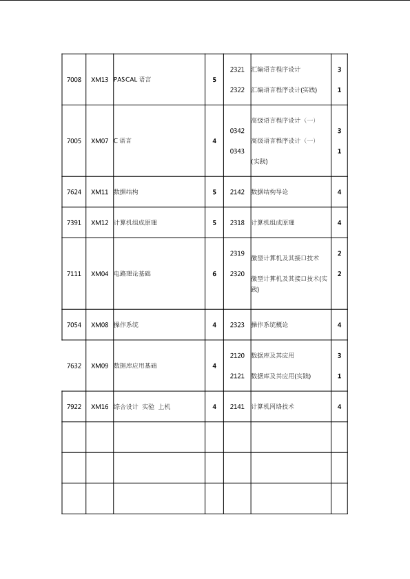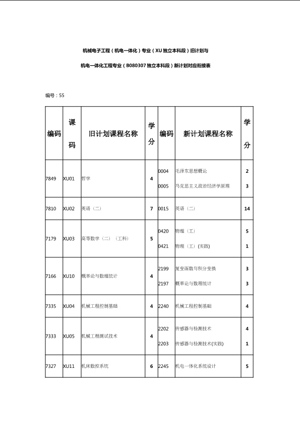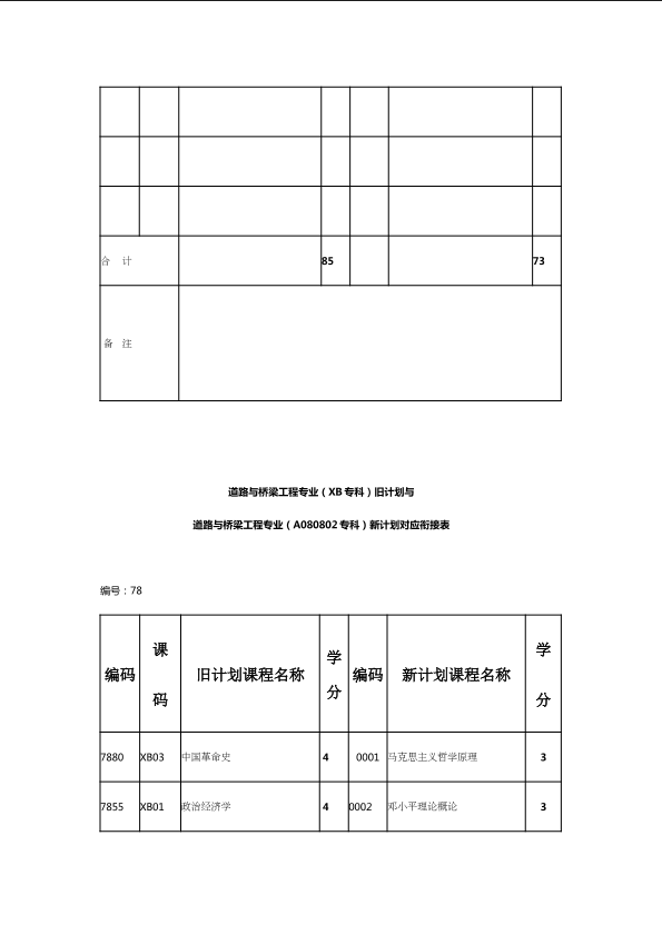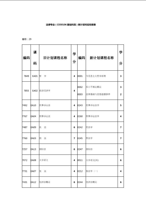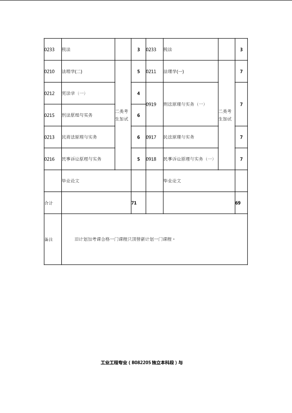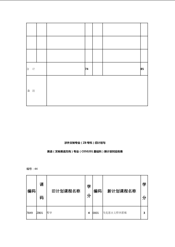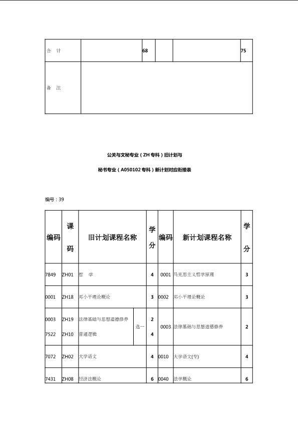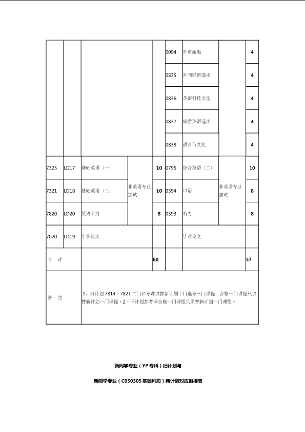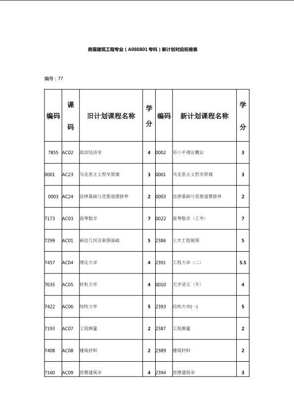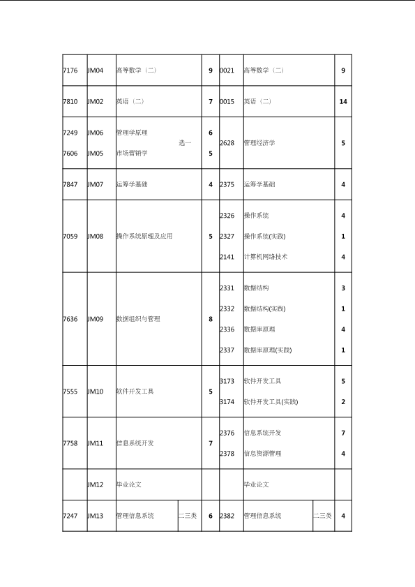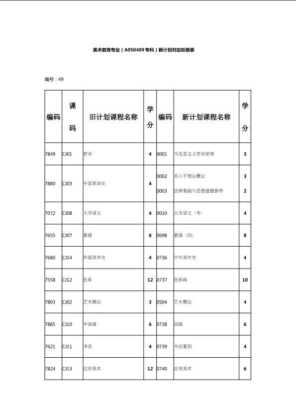 自考新旧课程对照表