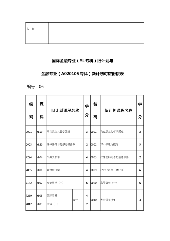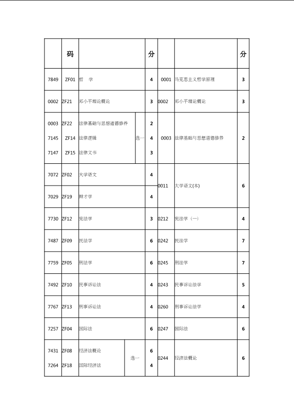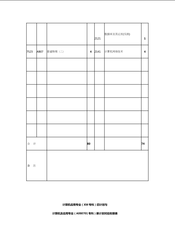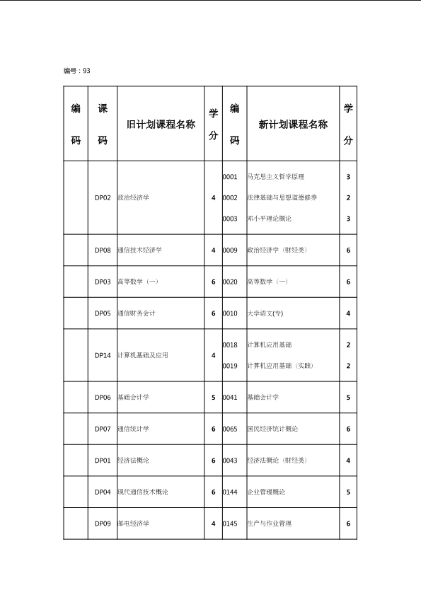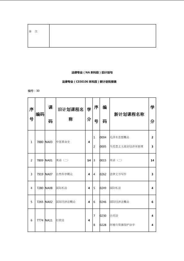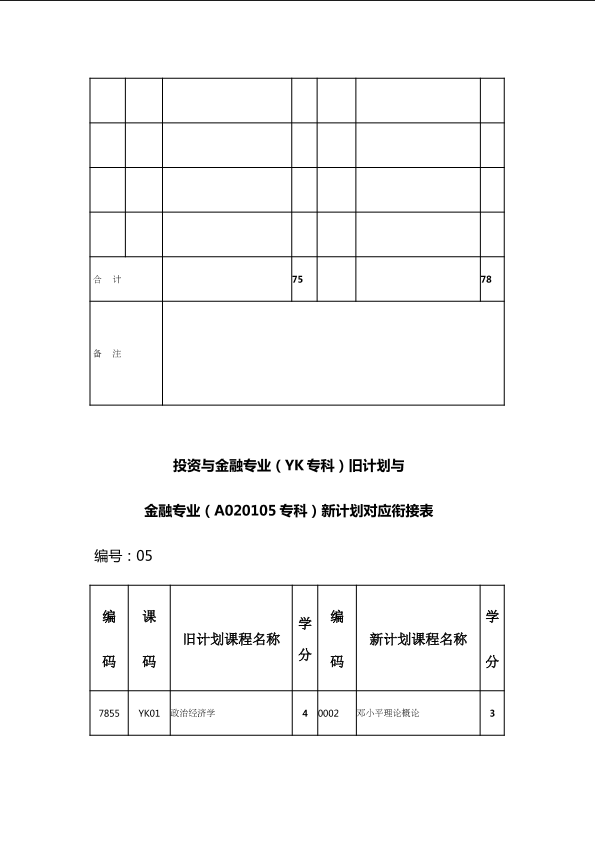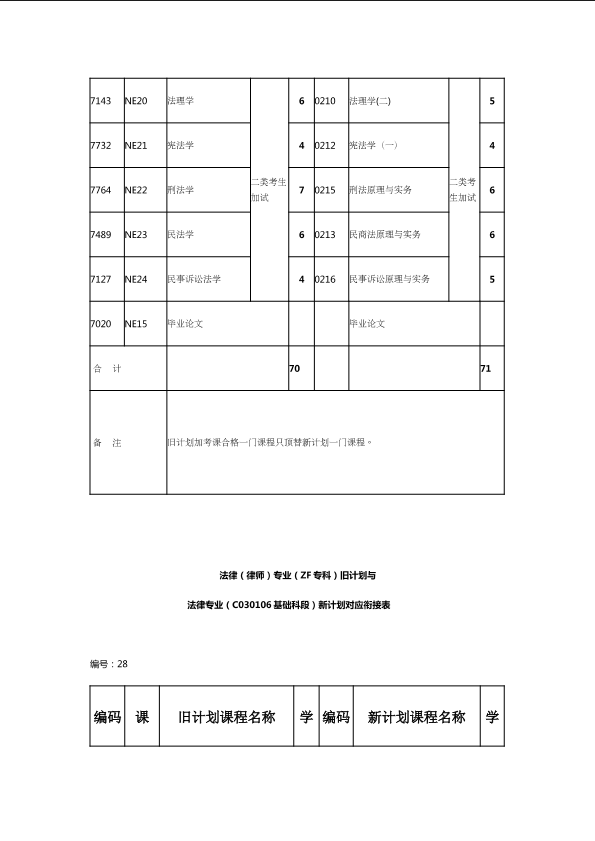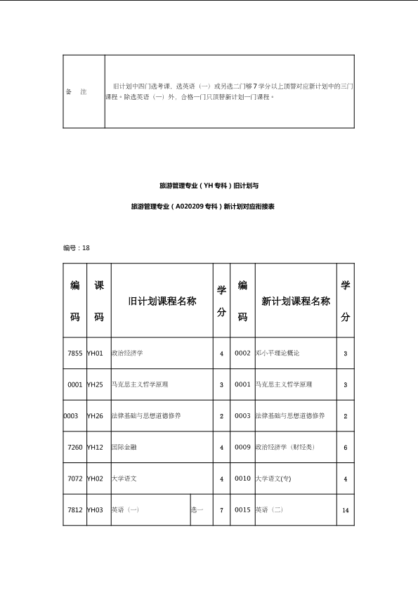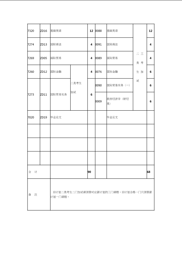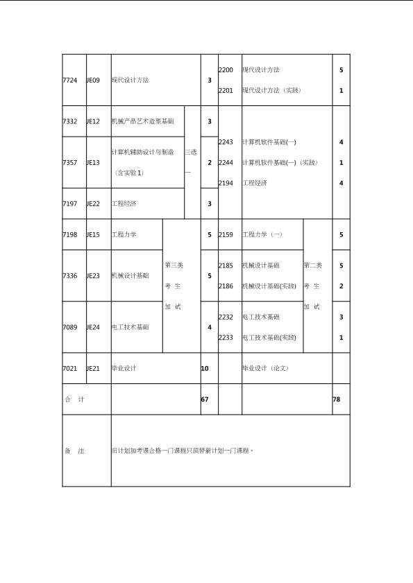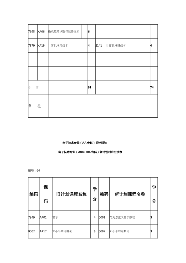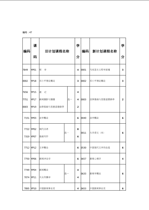 自考新旧课程对照表