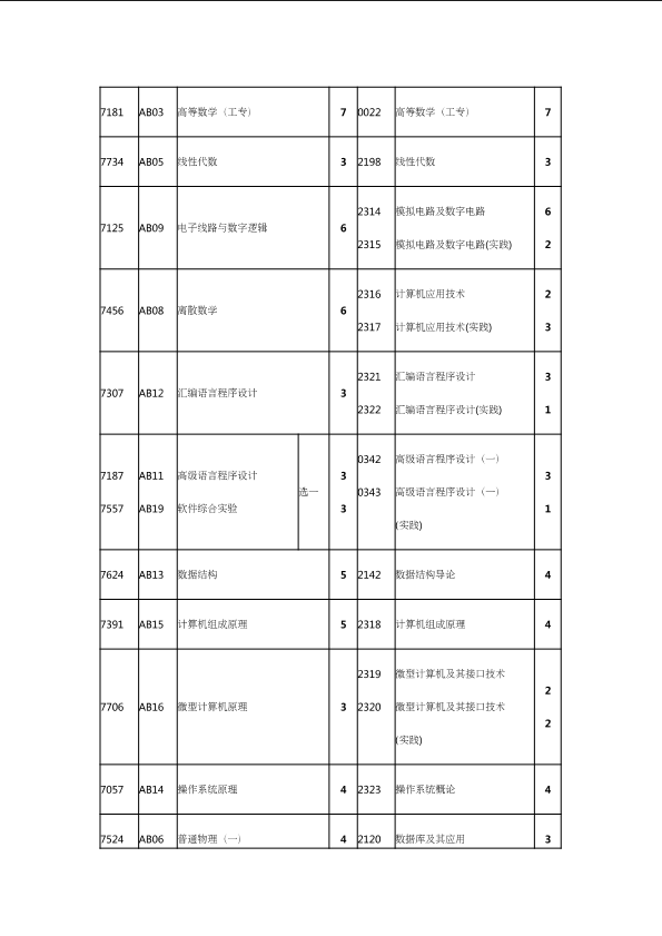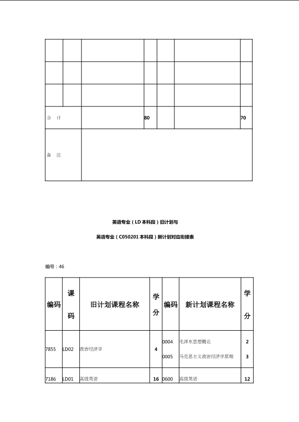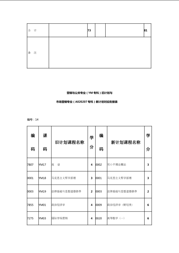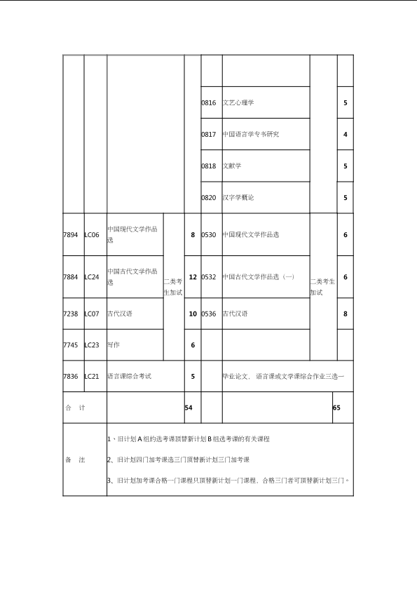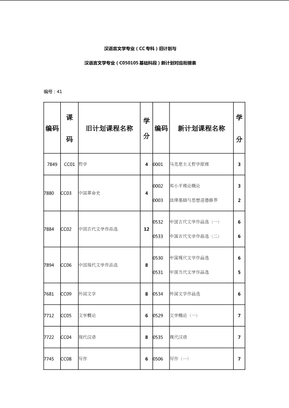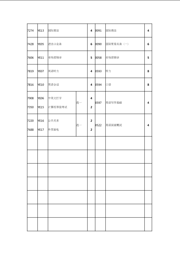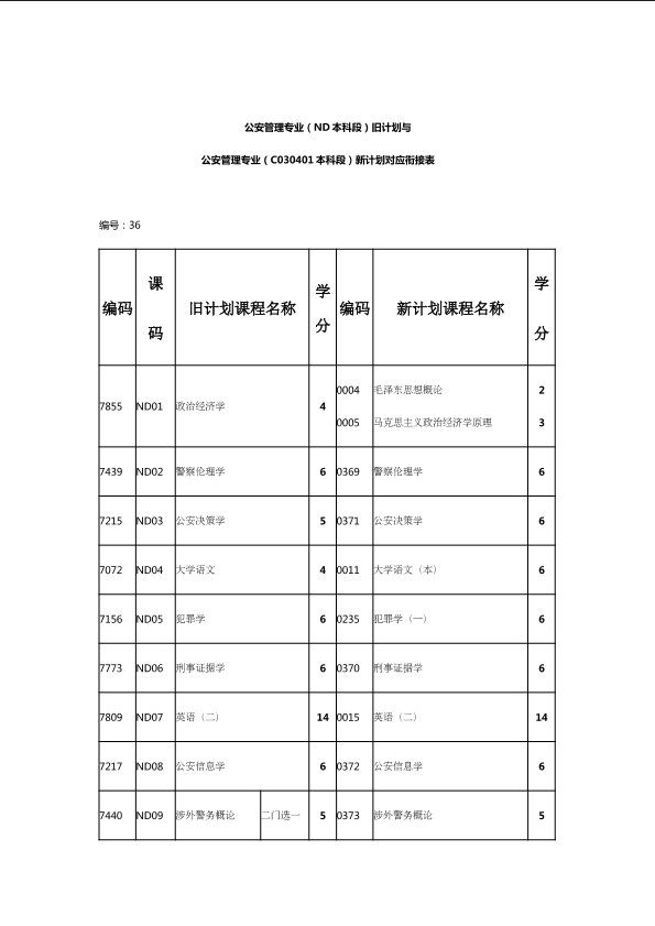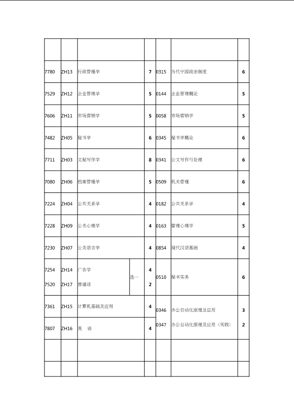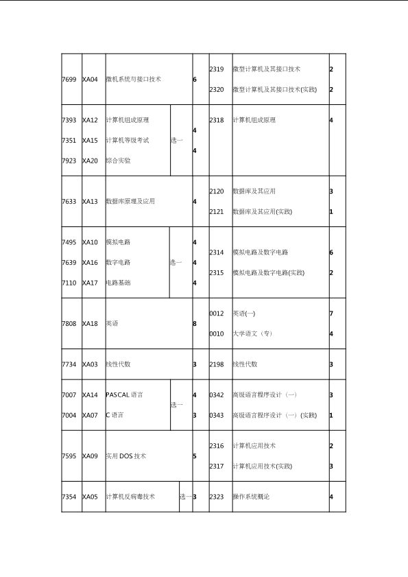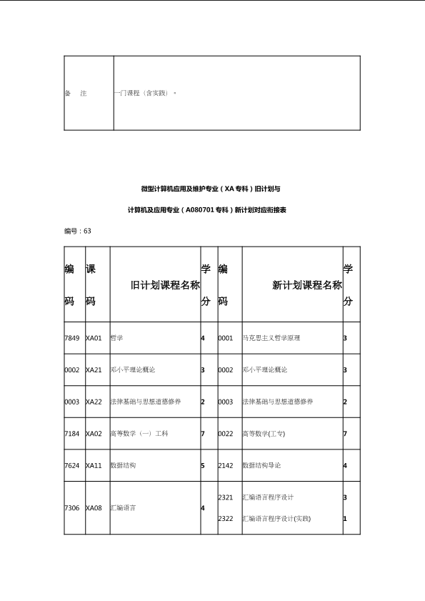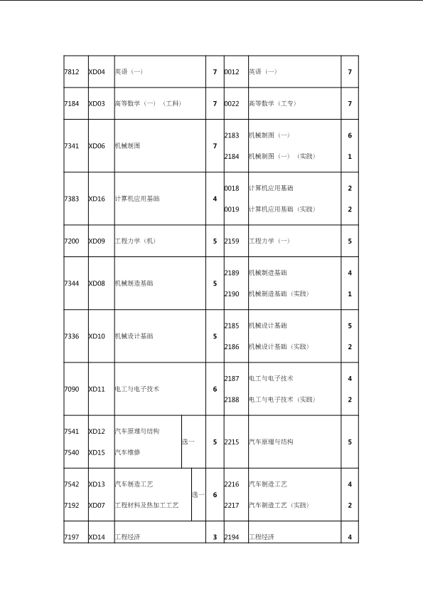 自考新旧课程对照表