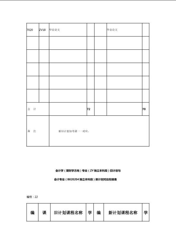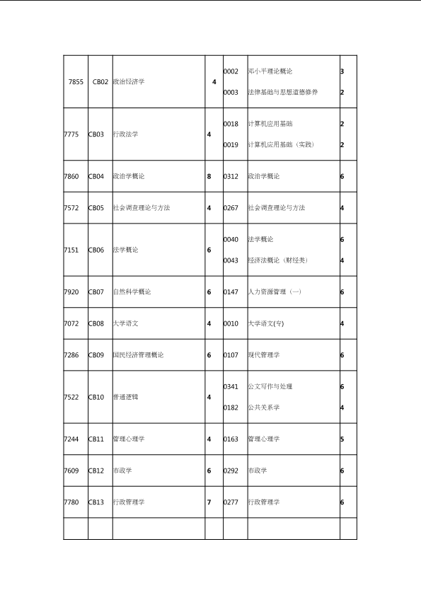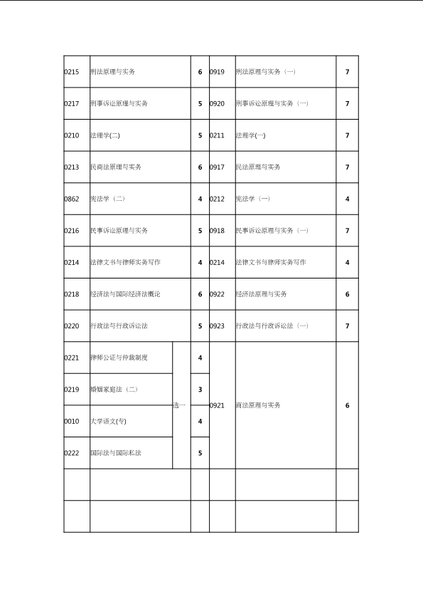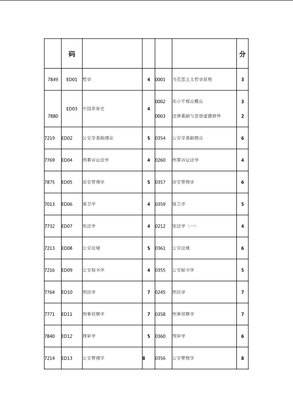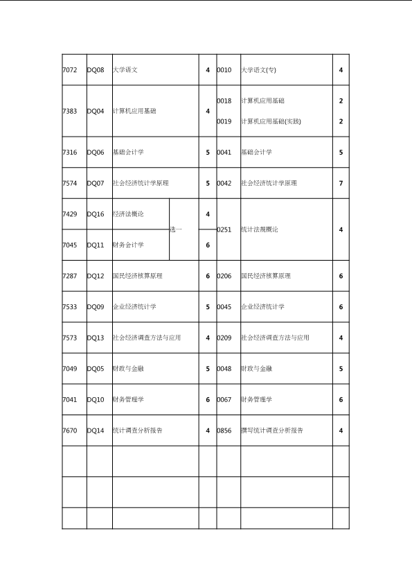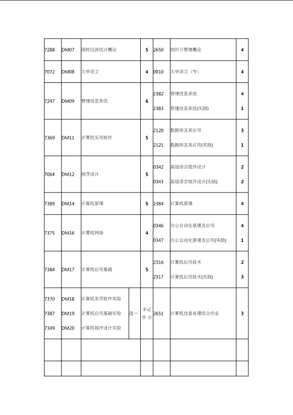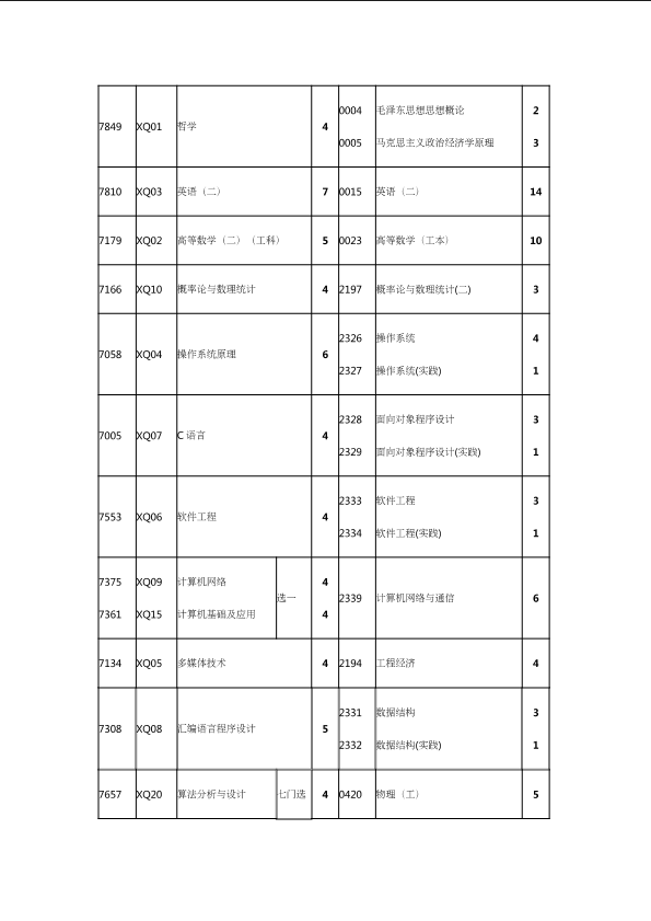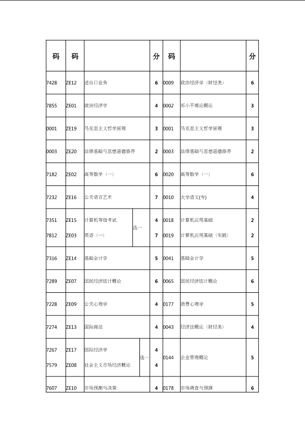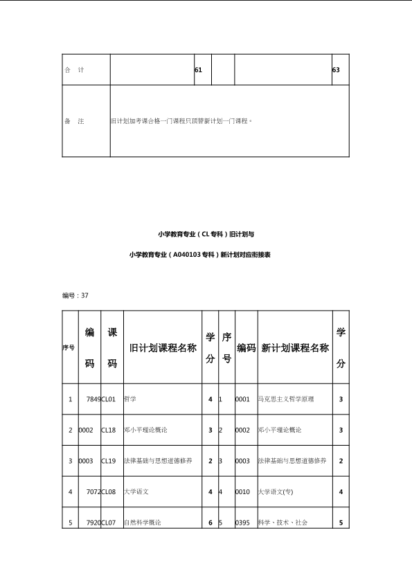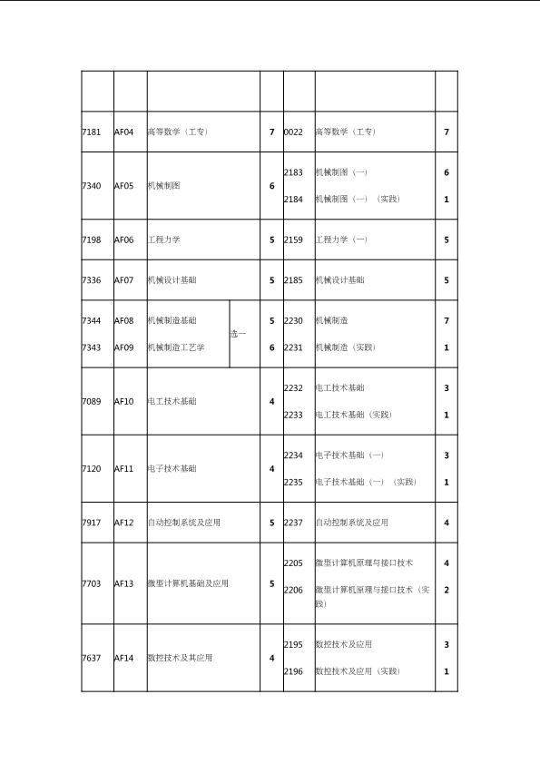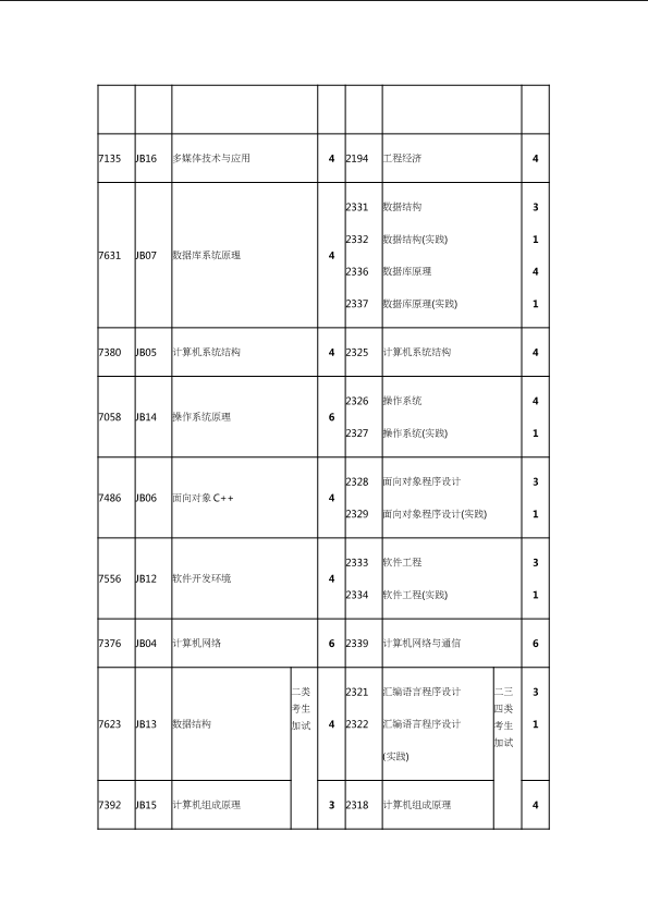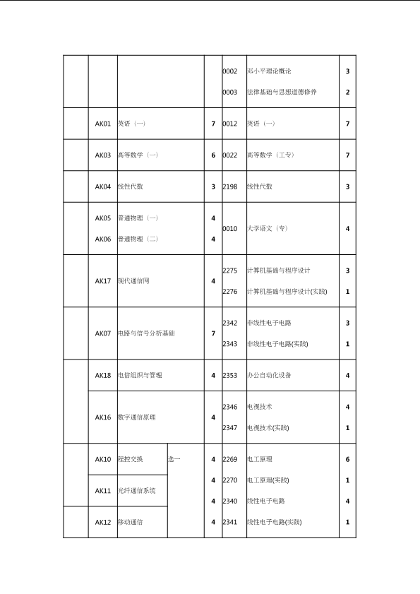 自考新旧课程对照表