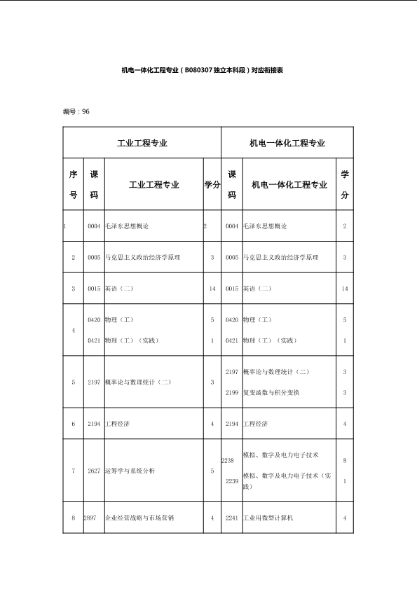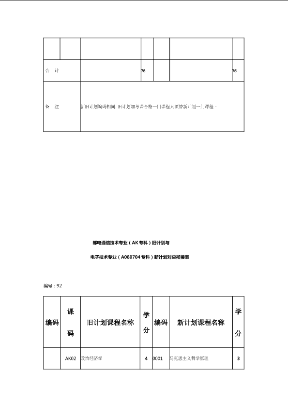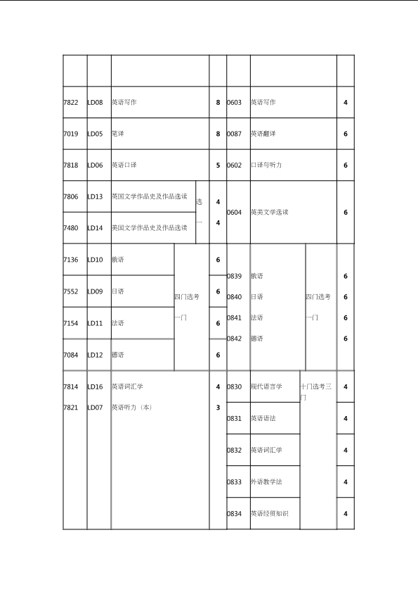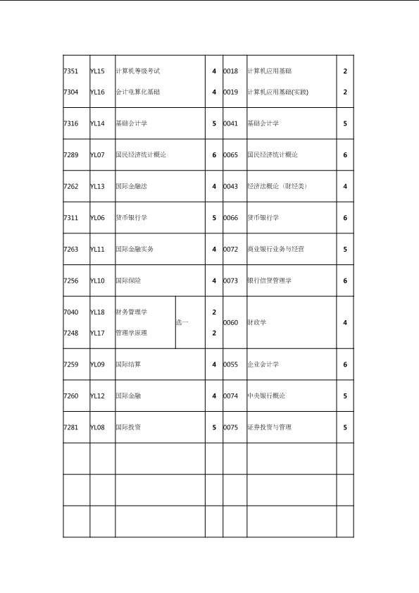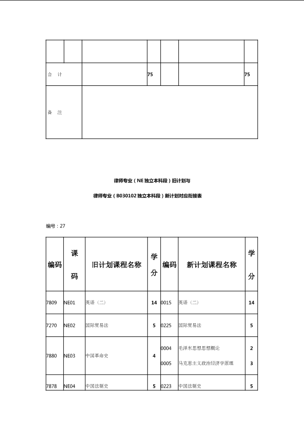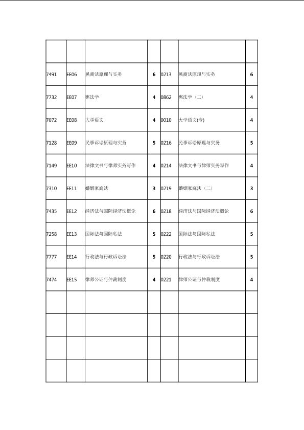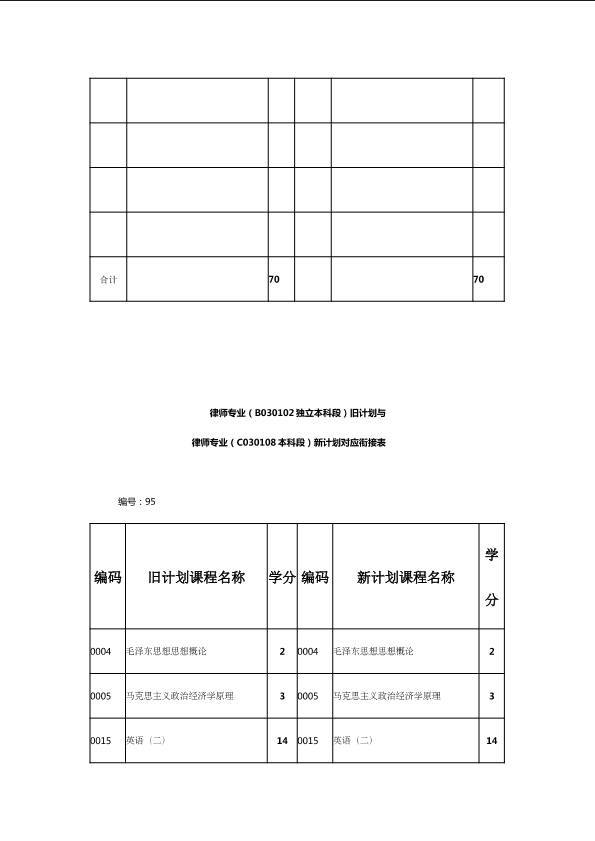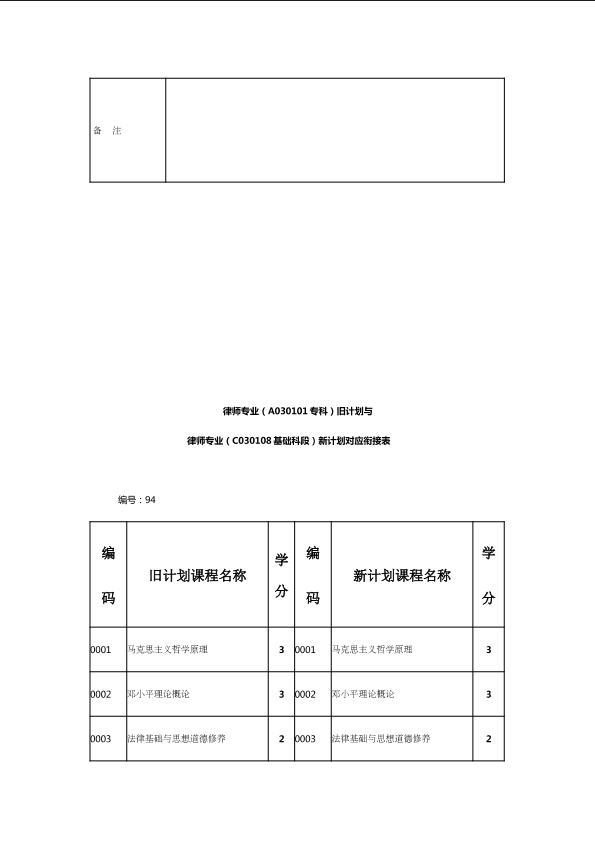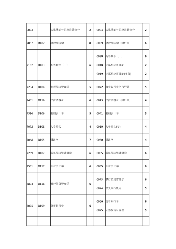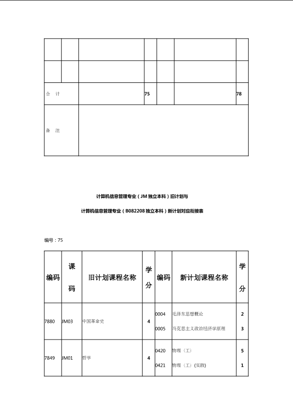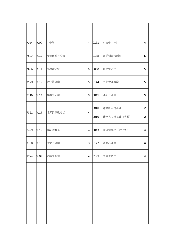 自考新旧课程对照表