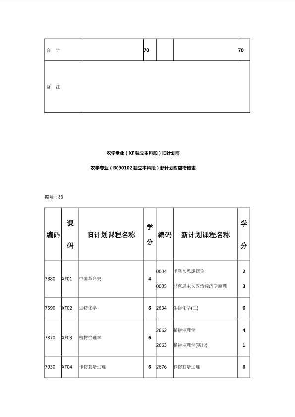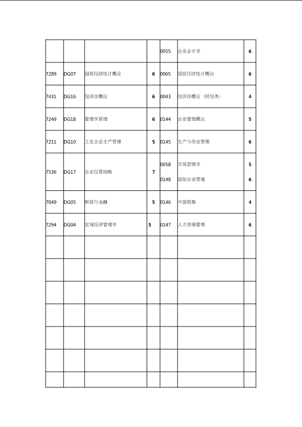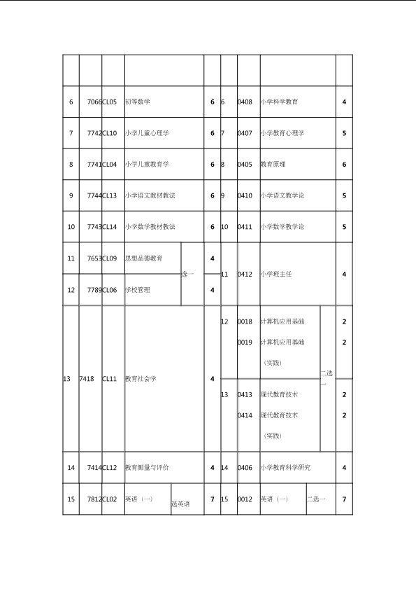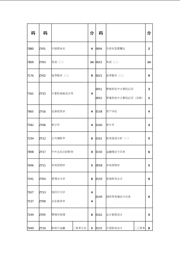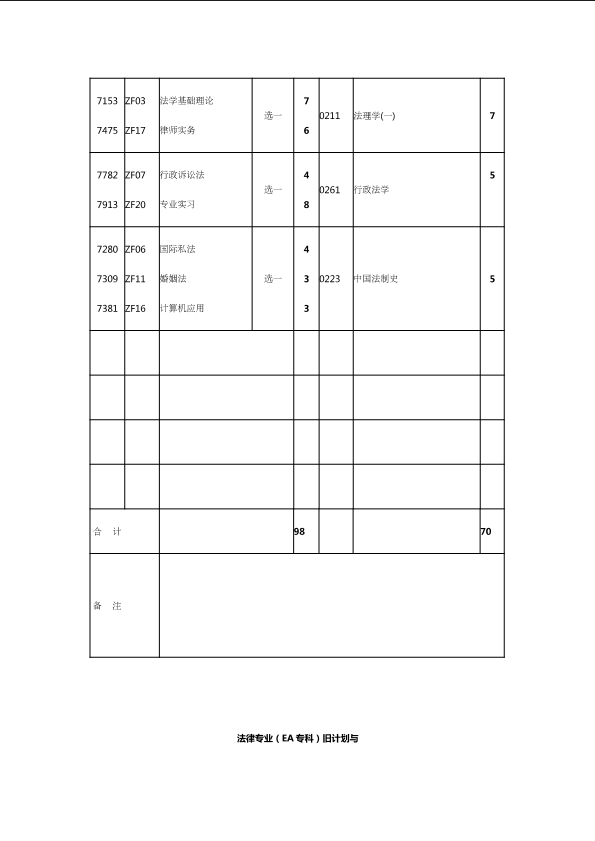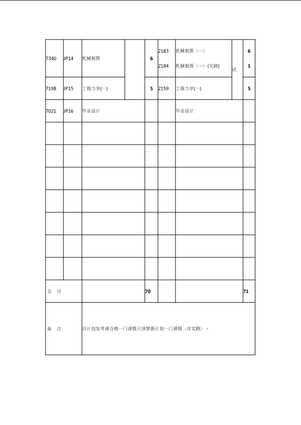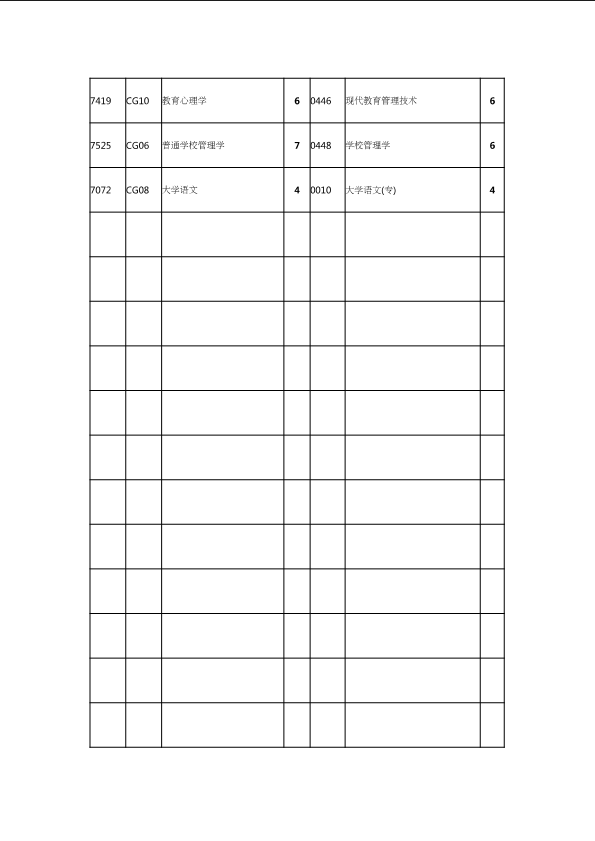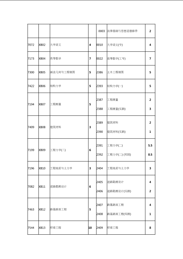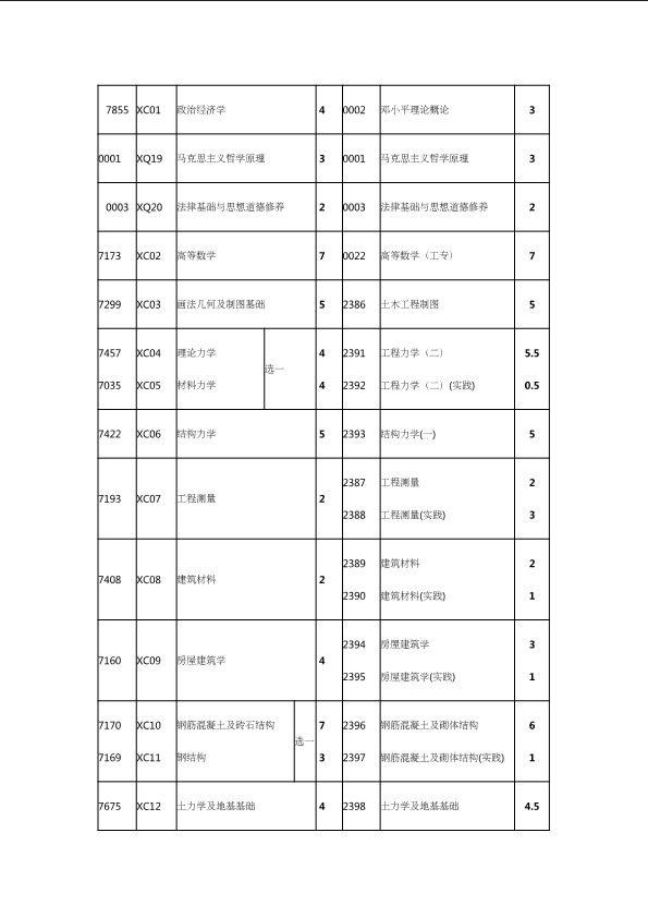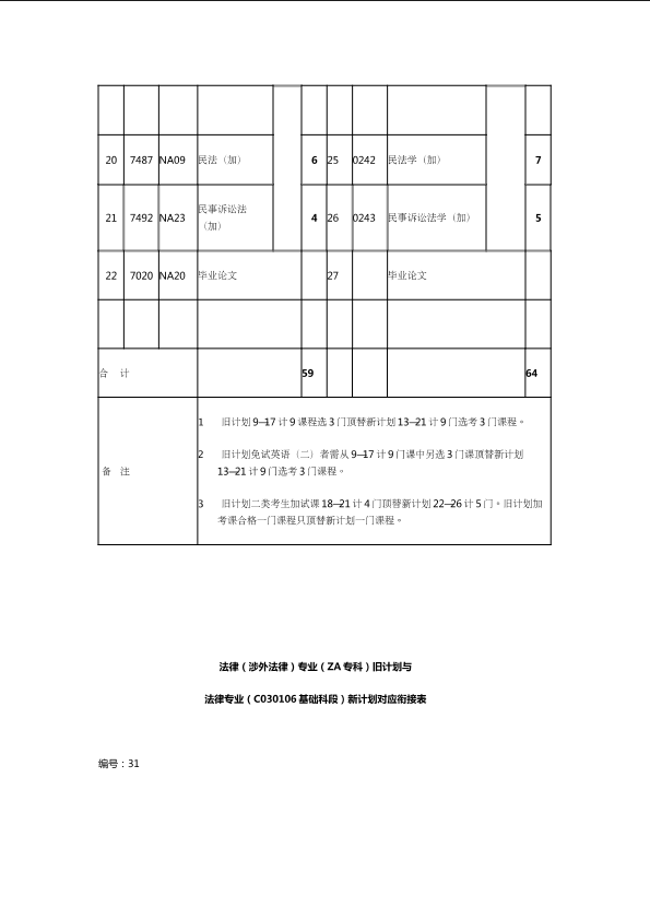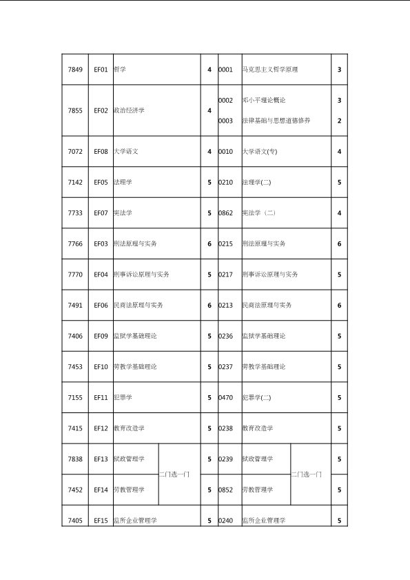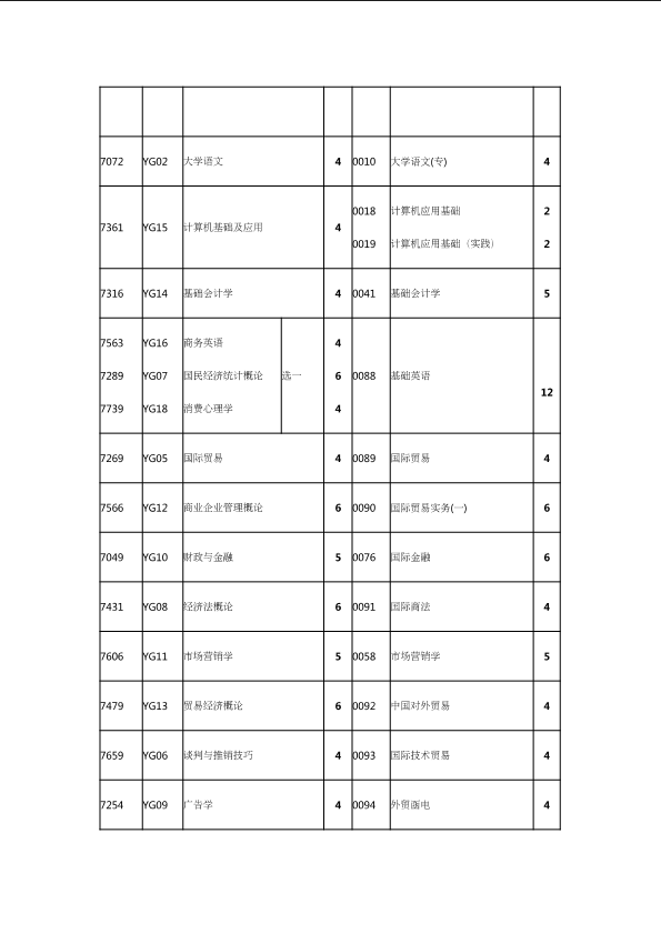 自考新旧课程对照表