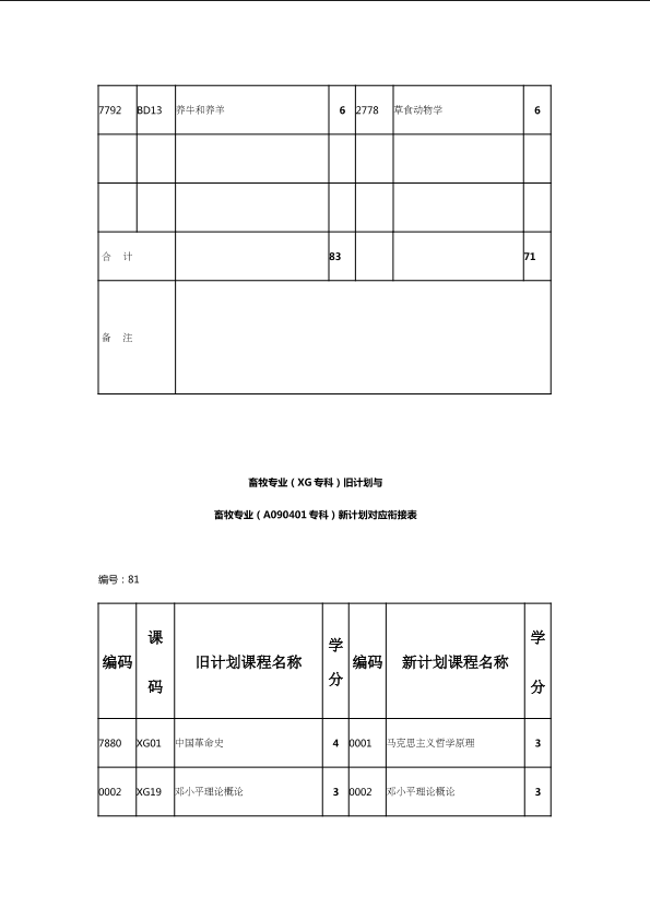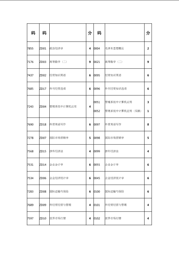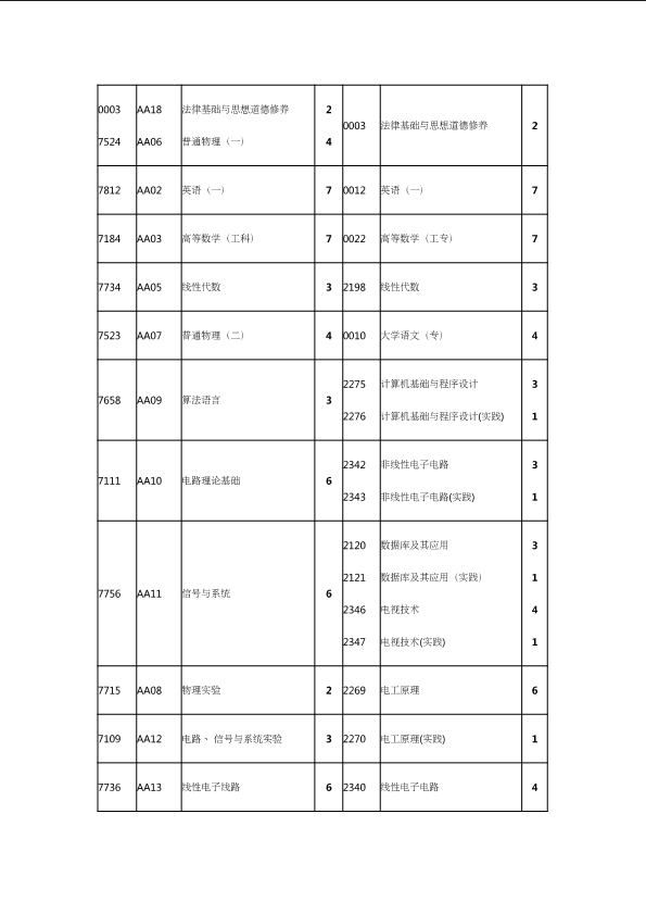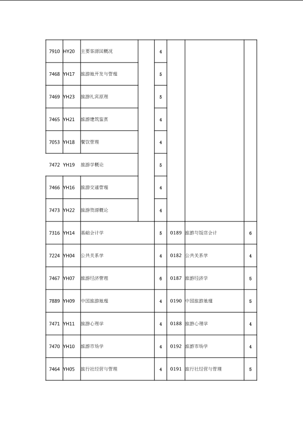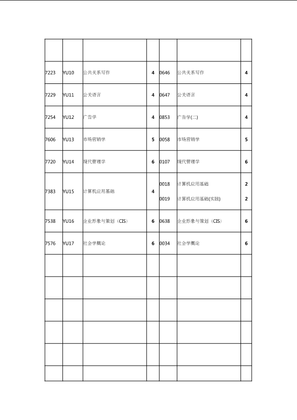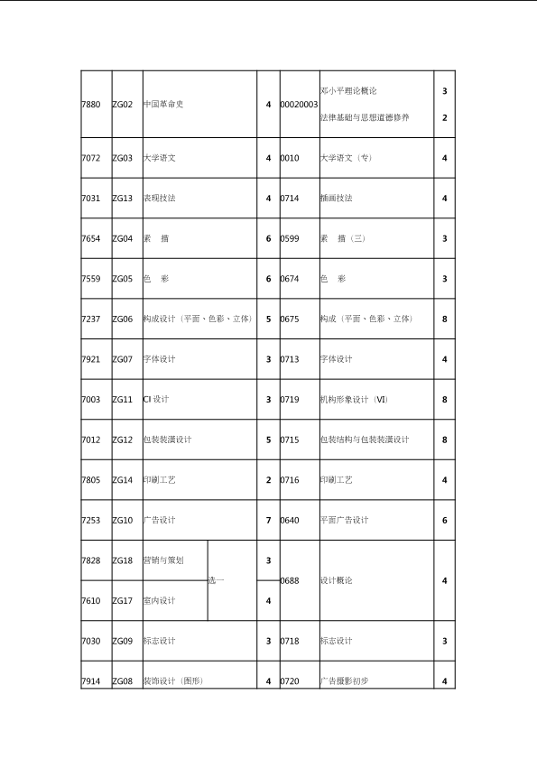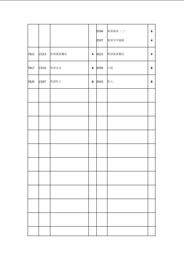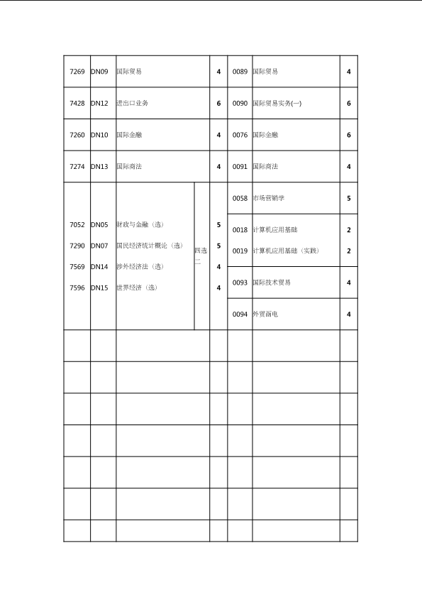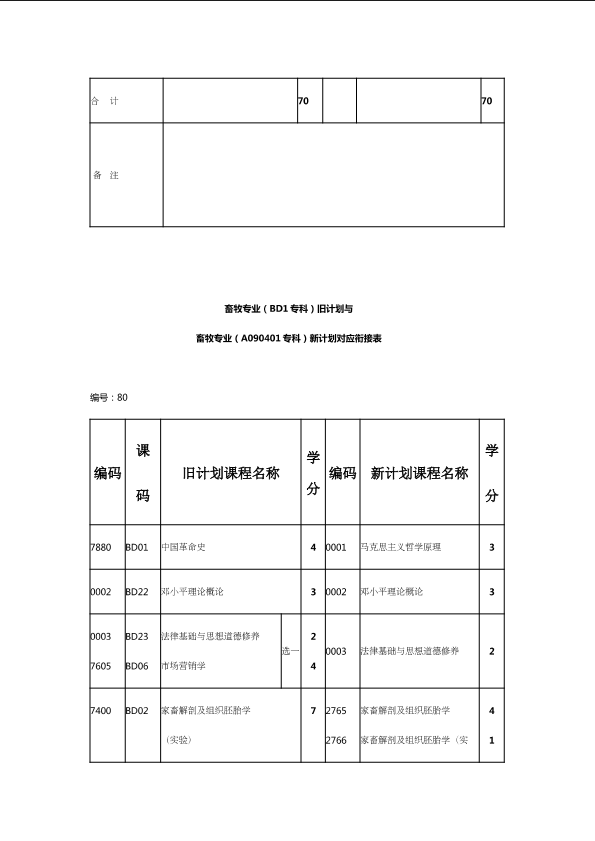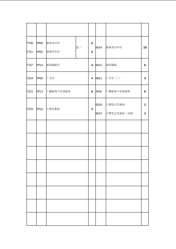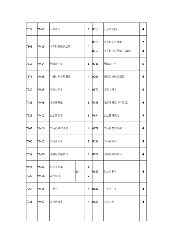 自考新旧课程对照表