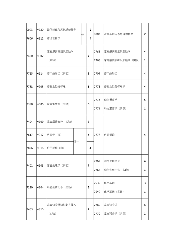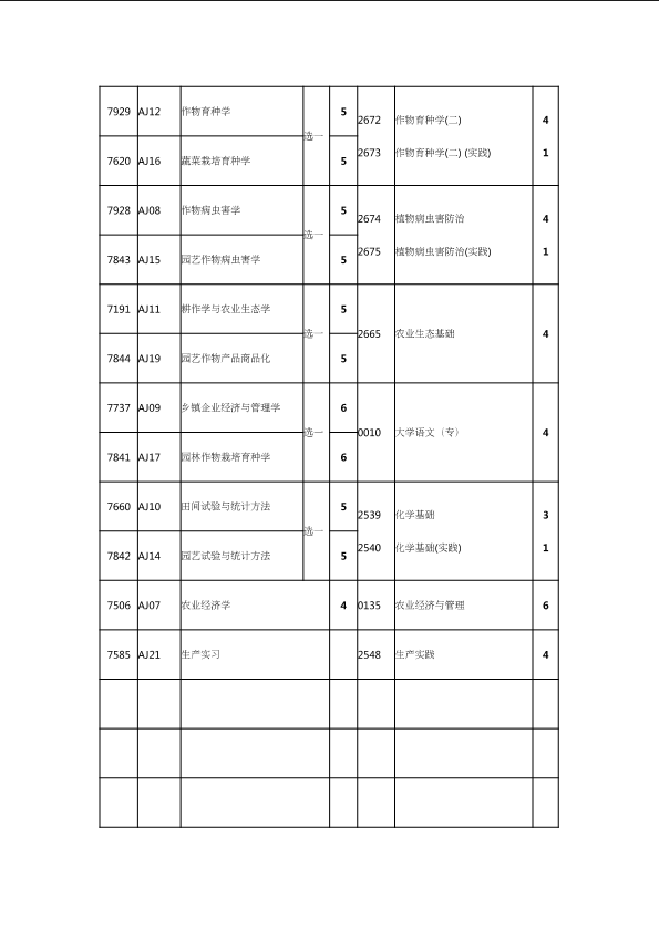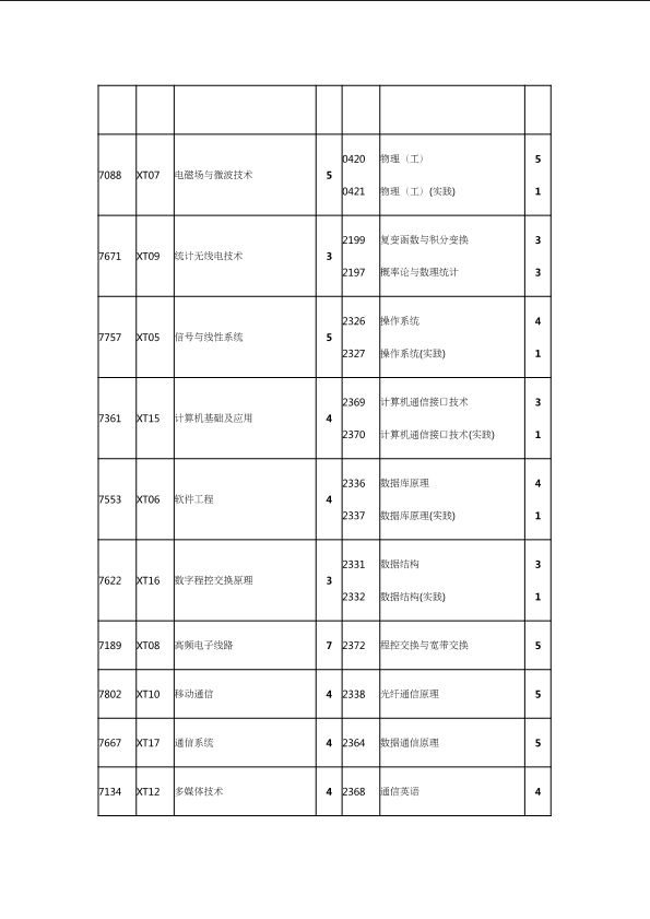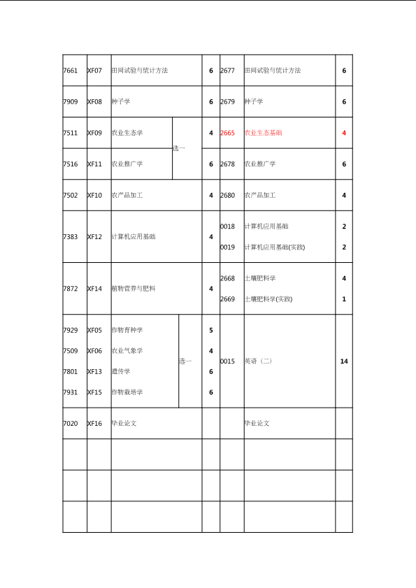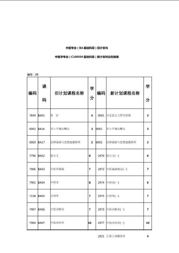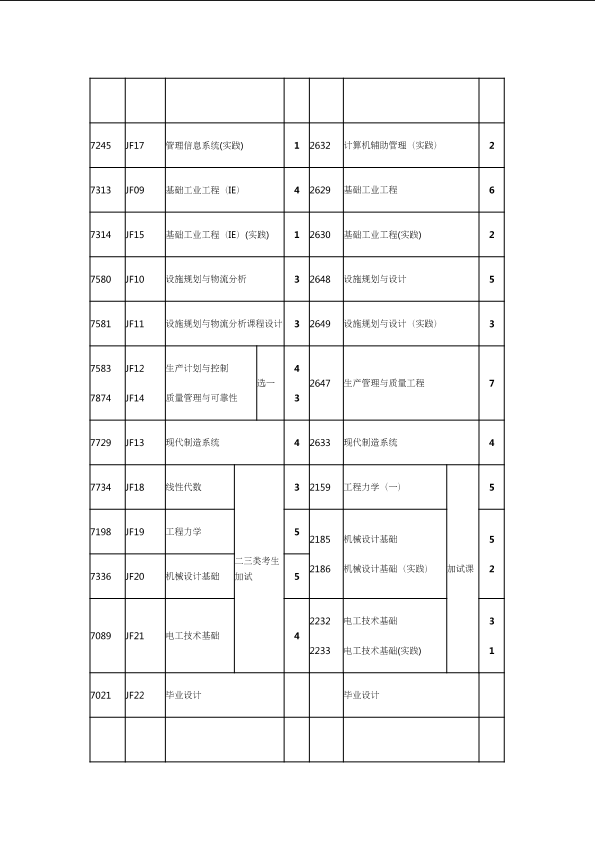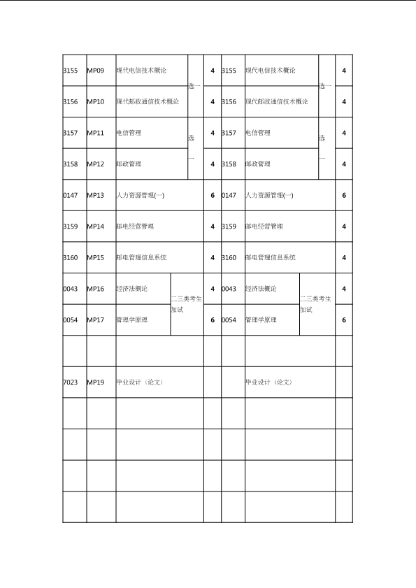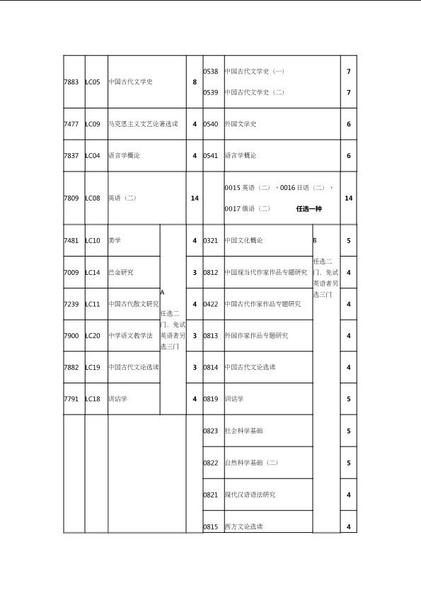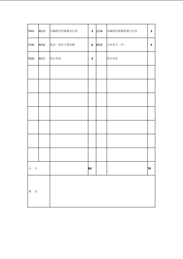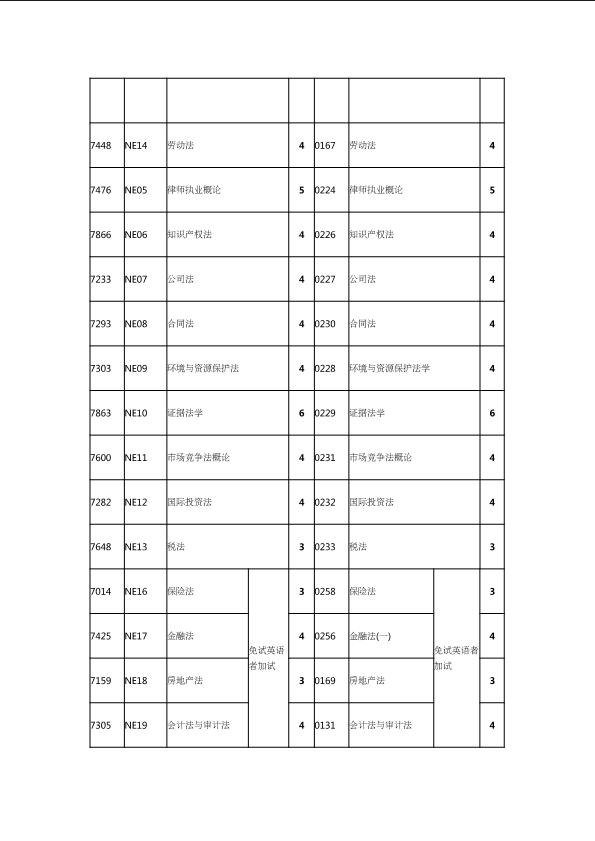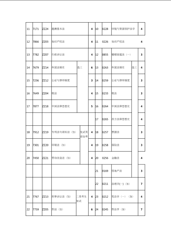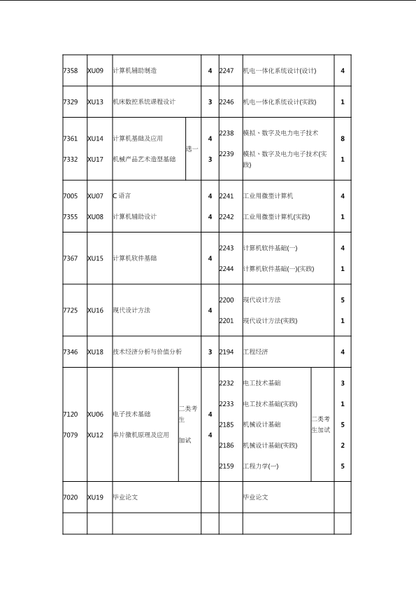 自考新旧课程对照表