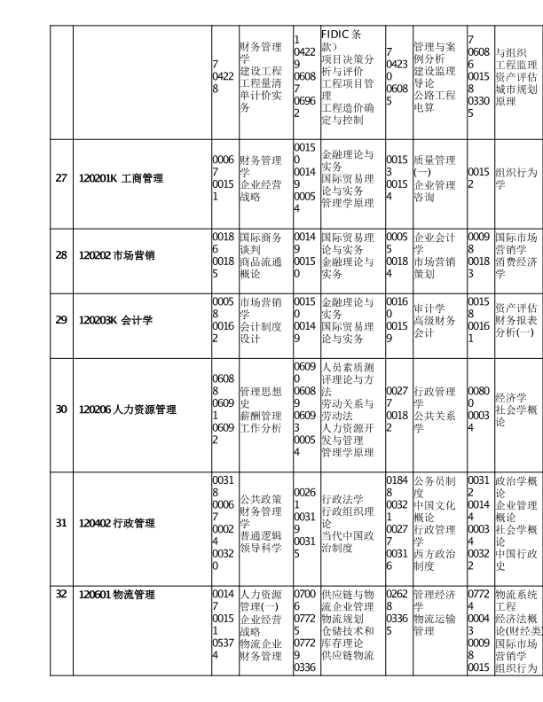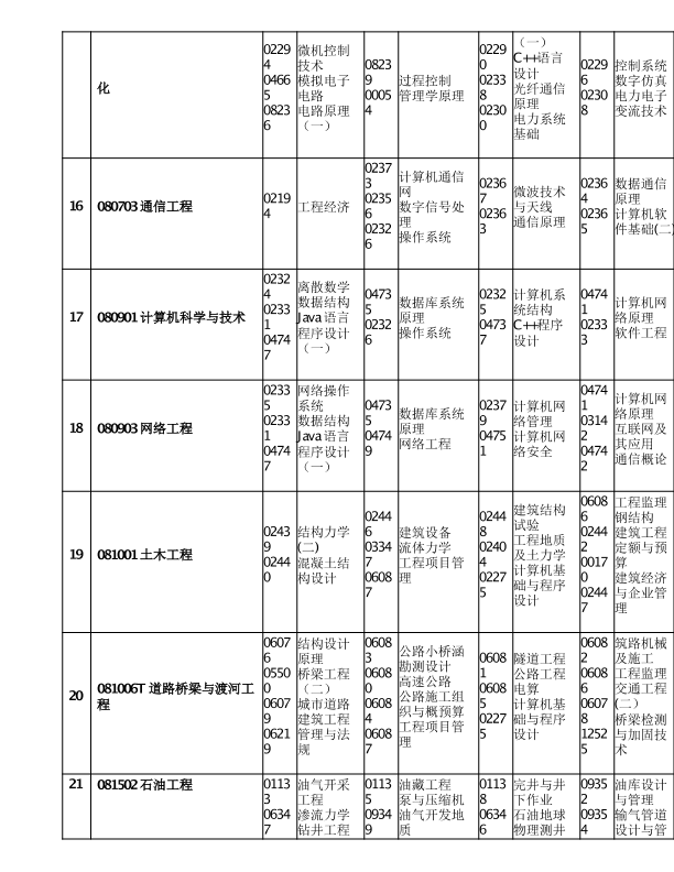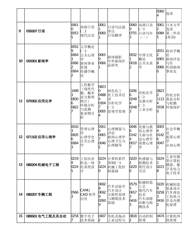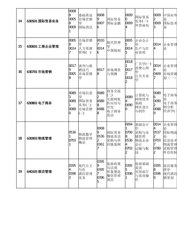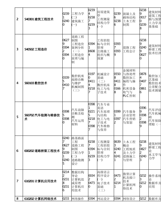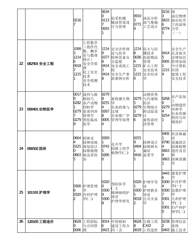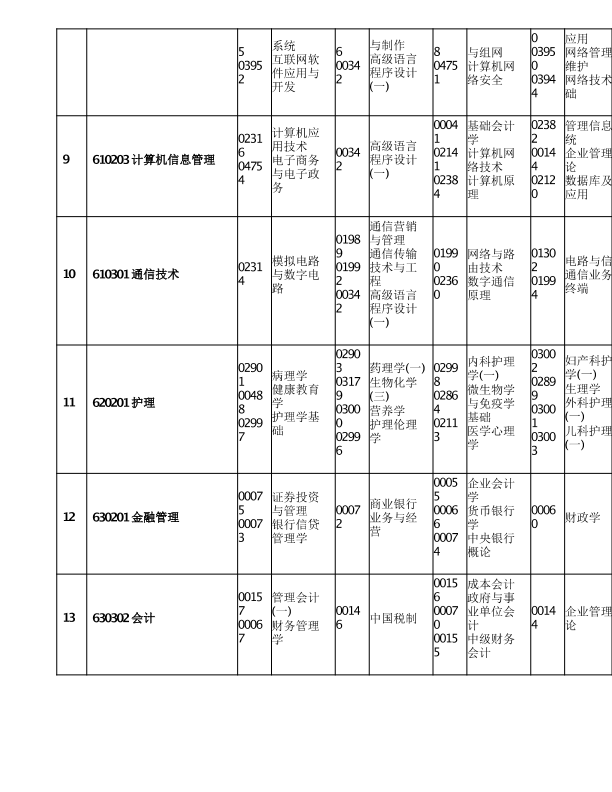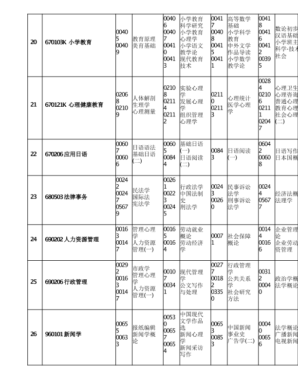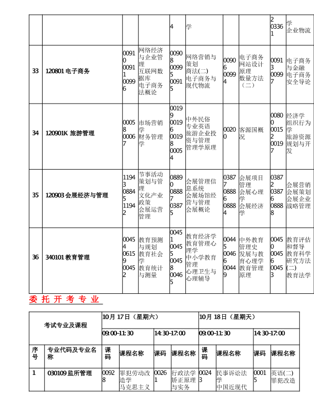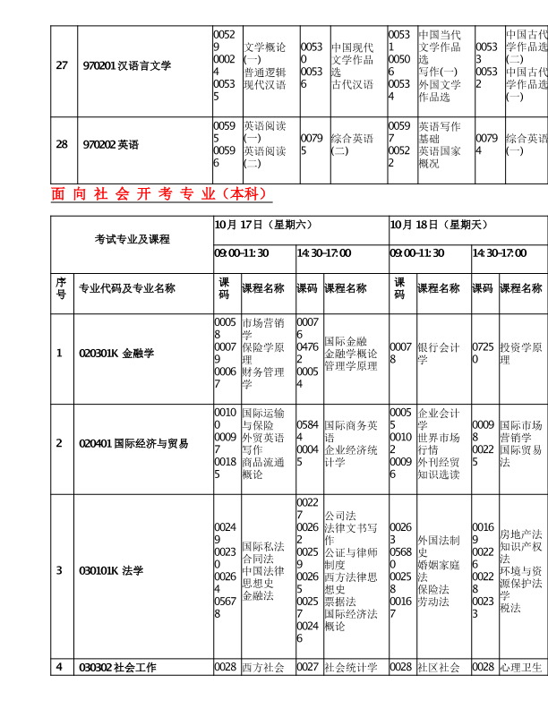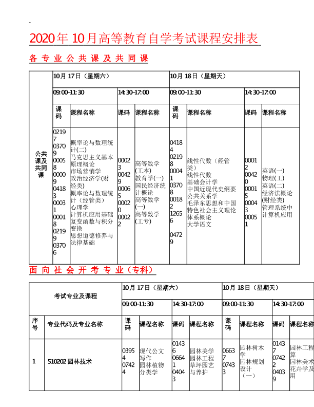 重庆市2020年10月高等教育自学考试考试课程安排