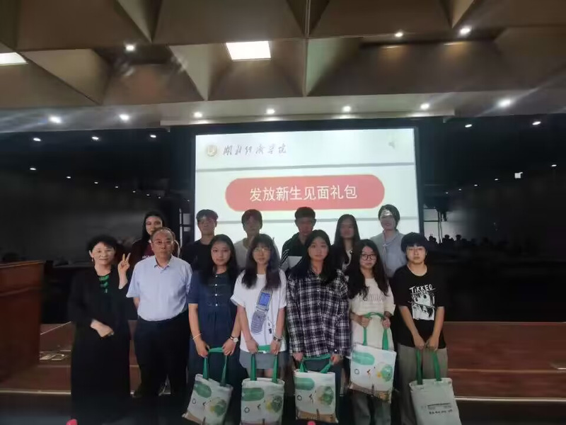 见面会上,院领导和新生班主任为新生发放新生见面礼包。