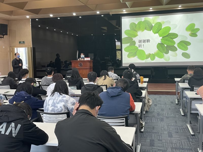 仪式结束后,虞毅老师从绿色金融的缘起开始,用同学们感兴趣的电影、动画为切入点,生动的介绍了国际和国内现存的环境背景,随后她以自身从业经历和从业经验为出发点全面解析了绿色金融,她认为绿色金融是能产生环境效益从而支持可持续发展的投融资活动,涉及整个金融体系对环境风险的有效管理。此外,虞毅老师从绿色金融集团化产品的架构体系方面为我们介绍了金融绿色产品和一般金融产品的区别,用生动的案例从产业链角度详细阐述了绿色金融的需求。