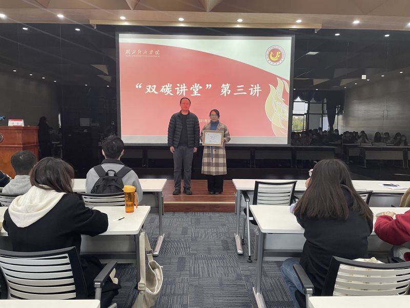 讲座开始前,学院院长助理黄锦鹏对主讲人虞毅的到来表示热烈的欢迎,并为其颁发了“双碳讲堂”纪念证书。