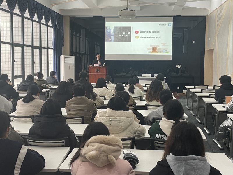 2023年12月14日,“双碳讲堂”第七讲在教五第二报告厅举行,湖北碳排放权交易中心副总经理杨光星应邀来新葡萄官网开展题为“中国碳市场建设思路及最新进展”的专题讲座,讲座由学院副院长刘习平主持,新葡萄8883官网AMG本科生及微专业学生参加了本次讲座。