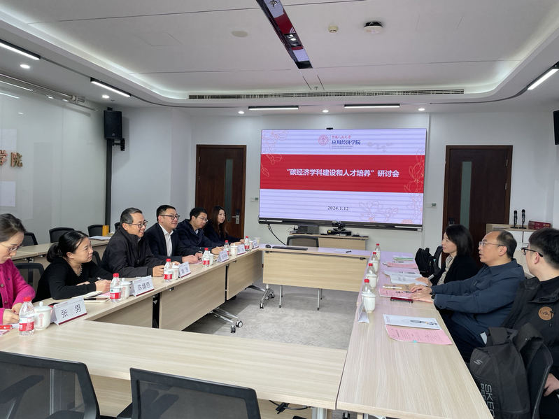1月12日,院长严飞,副院长王珂英、汪金伟,谭词博士一行就“新财经”改革、碳经济学科建设、碳经济人才培养等到中国人民大学进行调研。