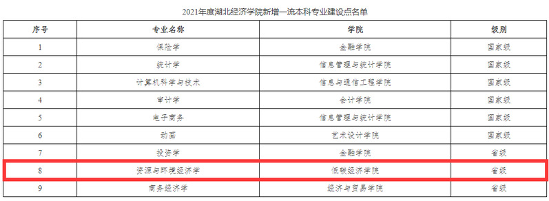 近日,教育部公布了2021年度国家级和省级一流本科专业建设点名单,新葡萄官网资源与环境经济学专业获批省级一流本科专业建设点。